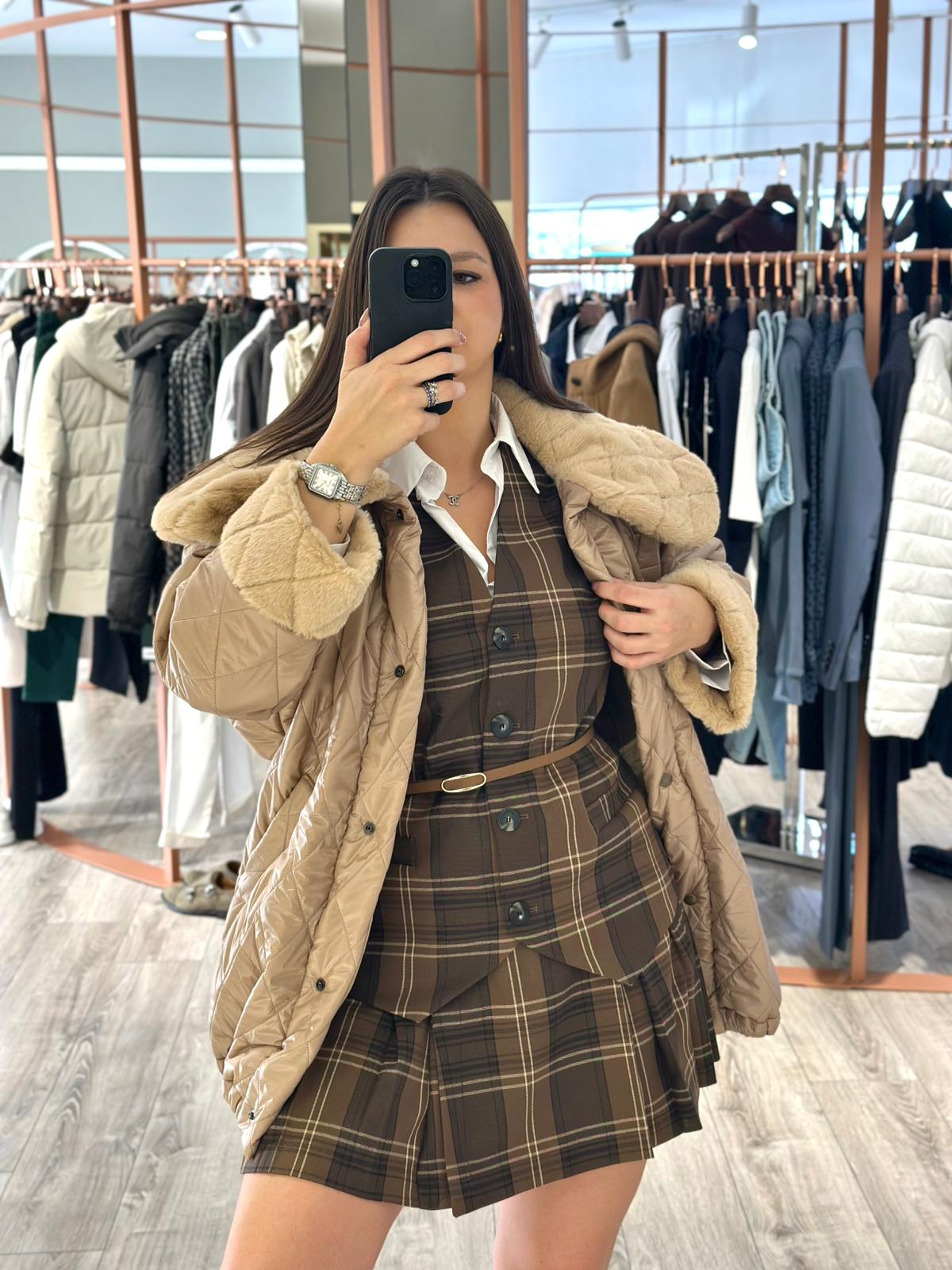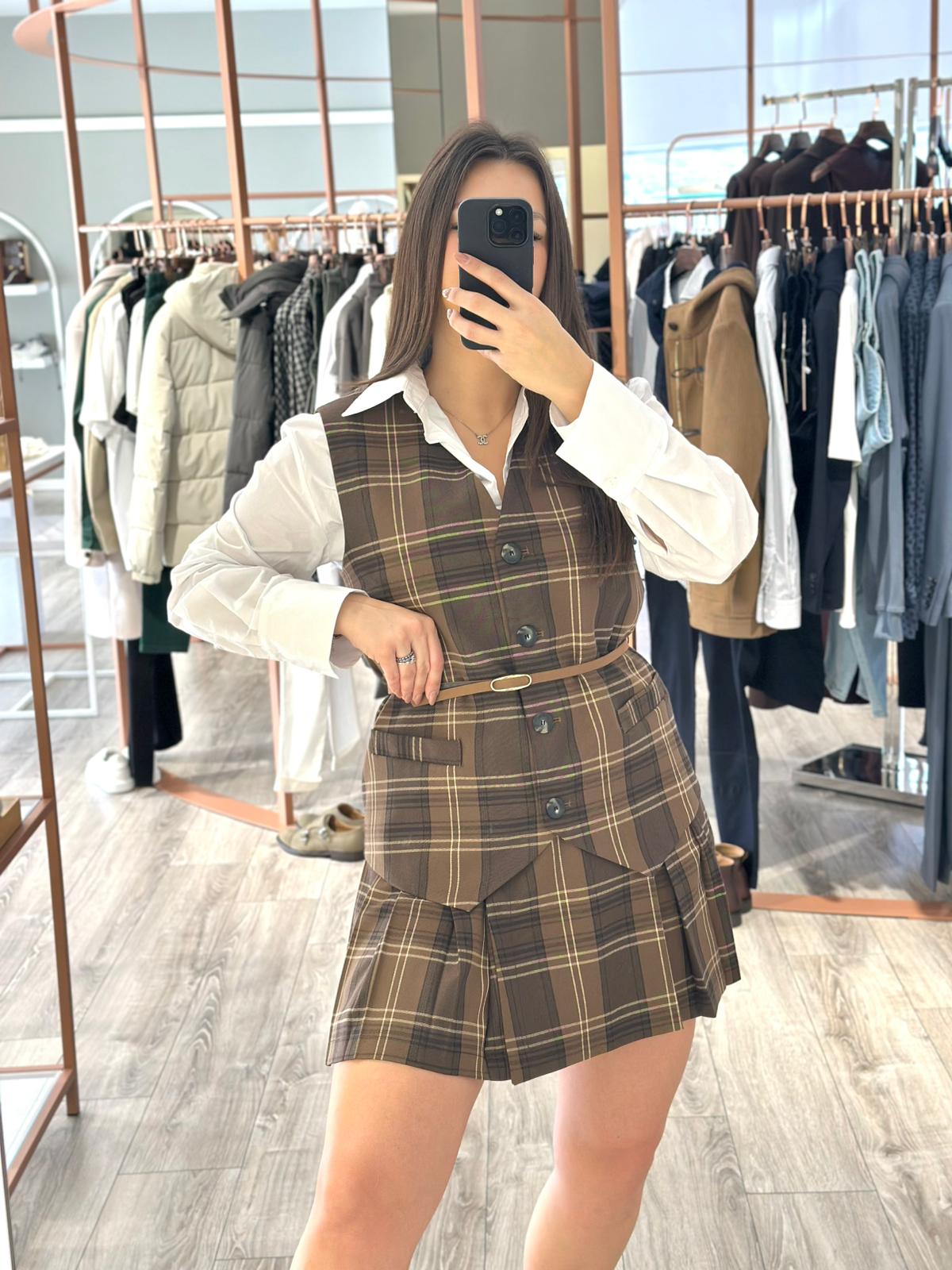SAIA CURTA XADREZ CASTANHA IMPERIAL