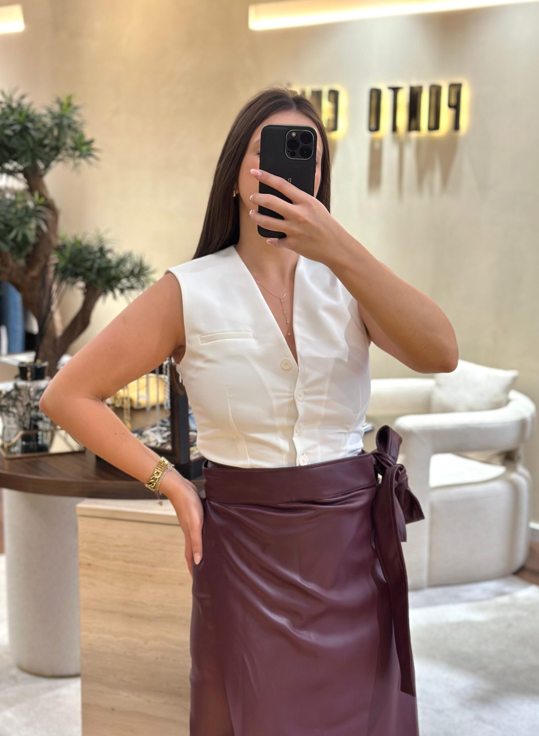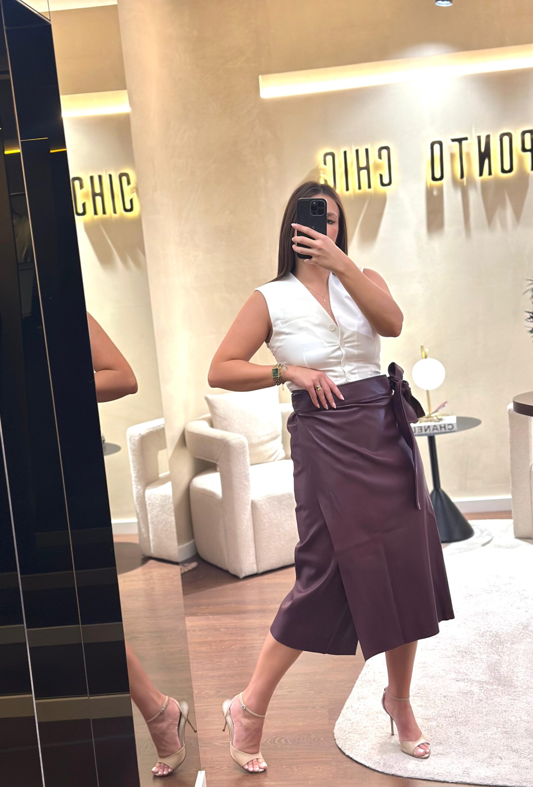 Fácil de combinar com camisas, blusas delicadas ou malhas estruturadas, esta saia EcoPel Dixie é uma peça statement que eleva instantaneamente qualquer outfit, garantindo um visual poderoso, sofisticado e atual.