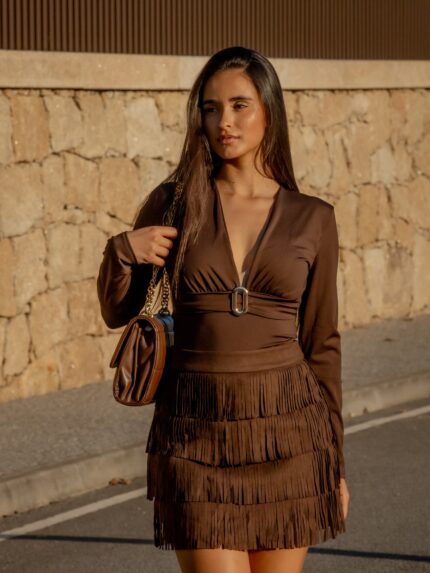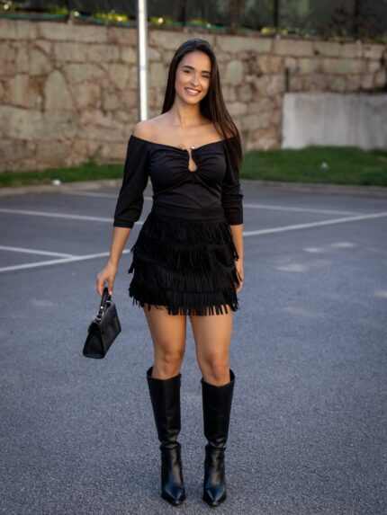 SAIA PRETA COM FRANJAS PONTO CHIC