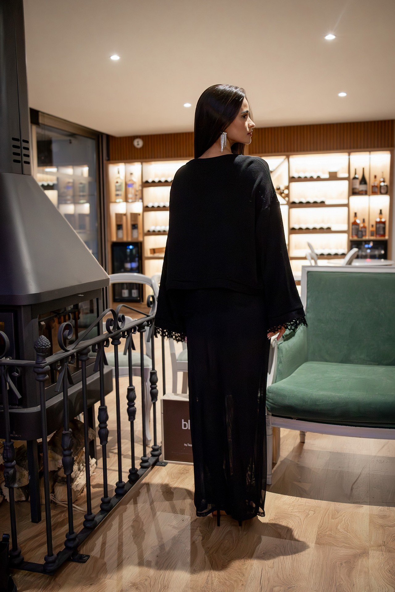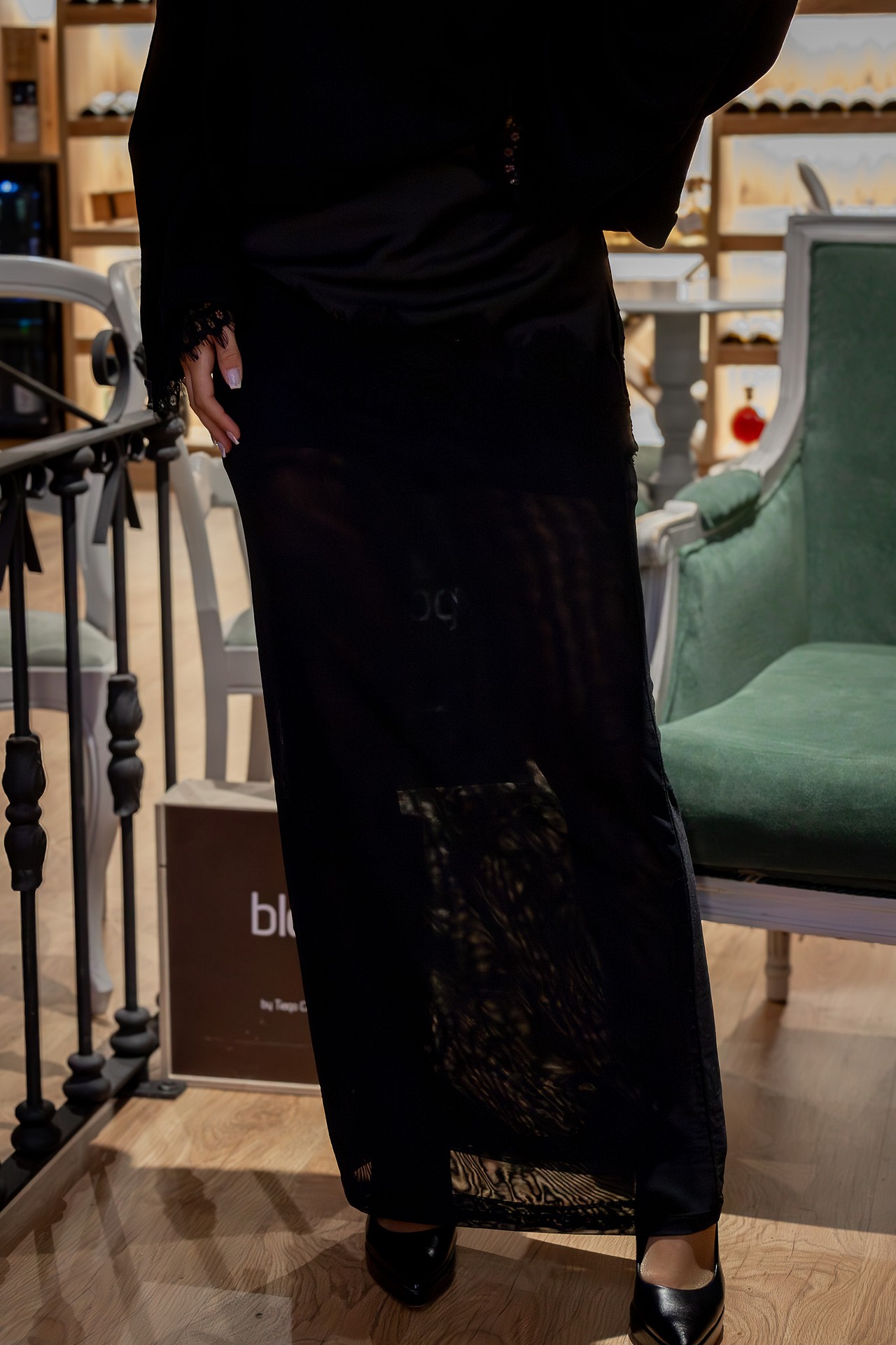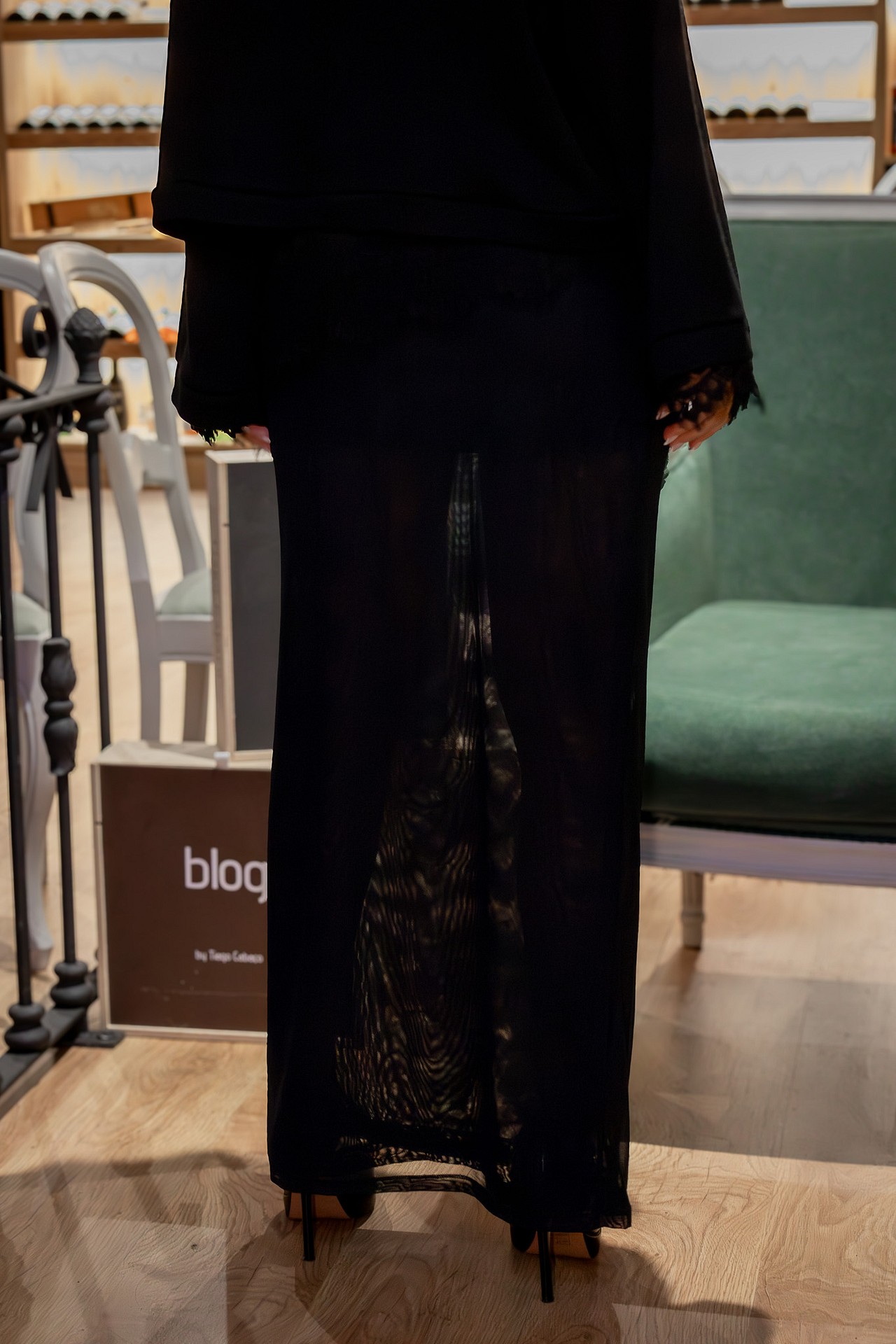 O corte midi alonga a silhueta, enquanto o tule confere movimento e sofisticação a cada passo. O design minimalista e o tom preto tornam-na uma peça versátil e fácil de combinar, perfeita para criar coordenados elegantes com um toque de originalidade.