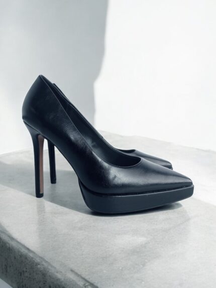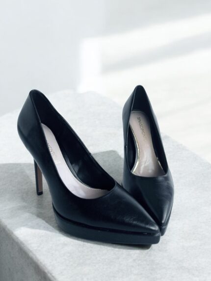 SAPATO PRETO DE COURO COM PLATAFORMA RINASCIMENTO