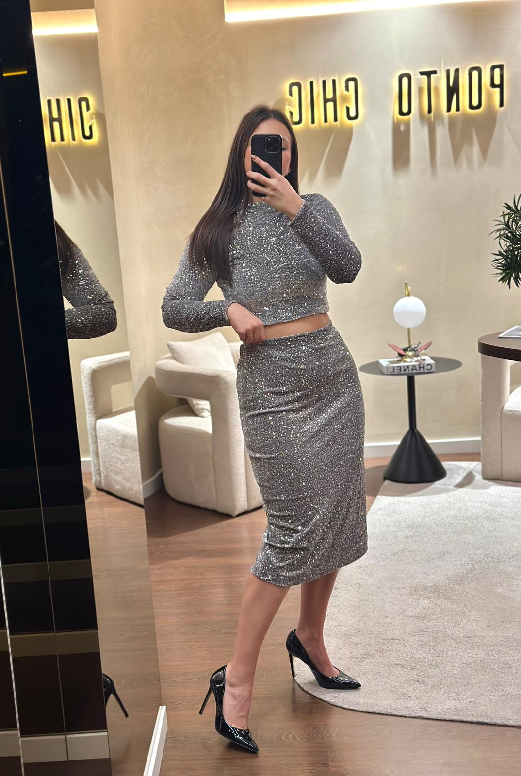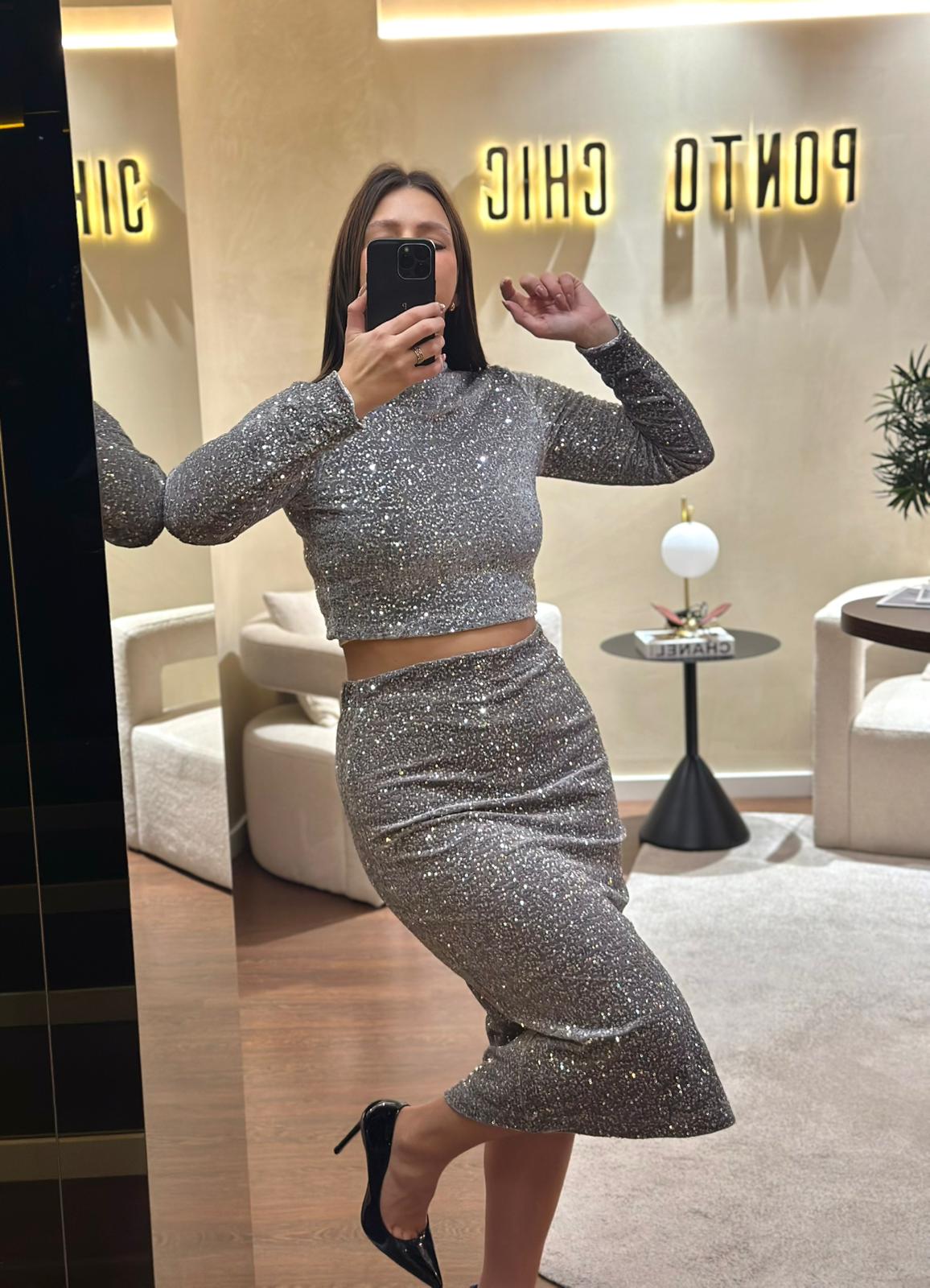 SAIA PRATEADA DE LANTEJOULAS D