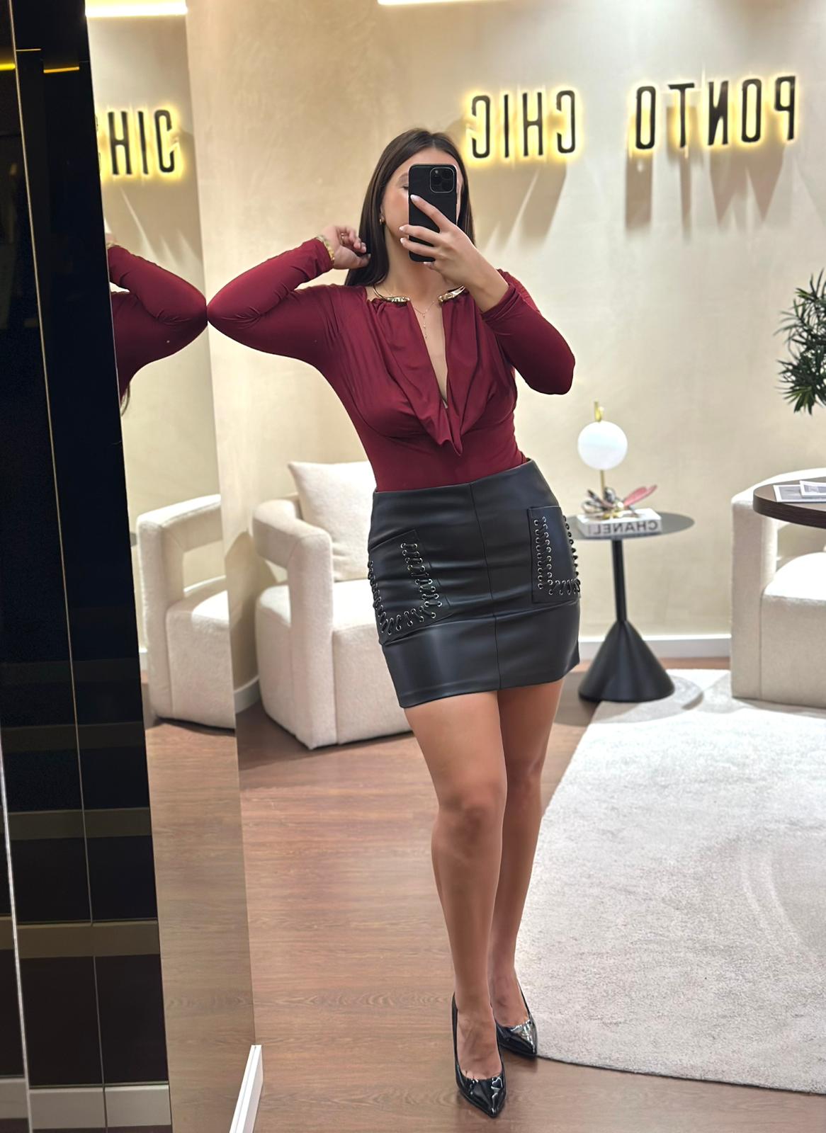 Versátil e fashion, a saia preta Ponto Chic adapta-se a diferentes ocasiões — desde coordenados casuais de dia, combinados com camisas e botas, até produções ousadas de noite, com tops ou blusas justas, assegurando sempre estilo e personalidade.