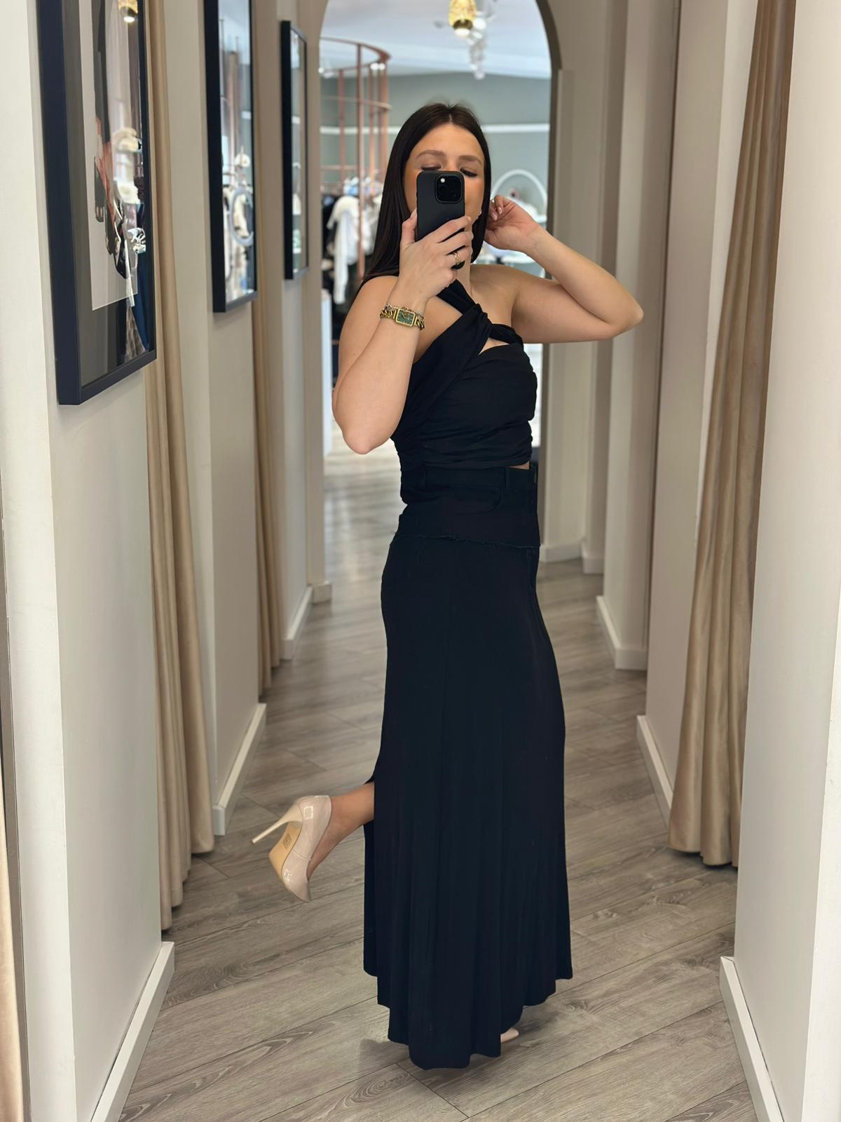 SAIA PRETA EM MALHA COM DETALHES EM GNGA ELEH