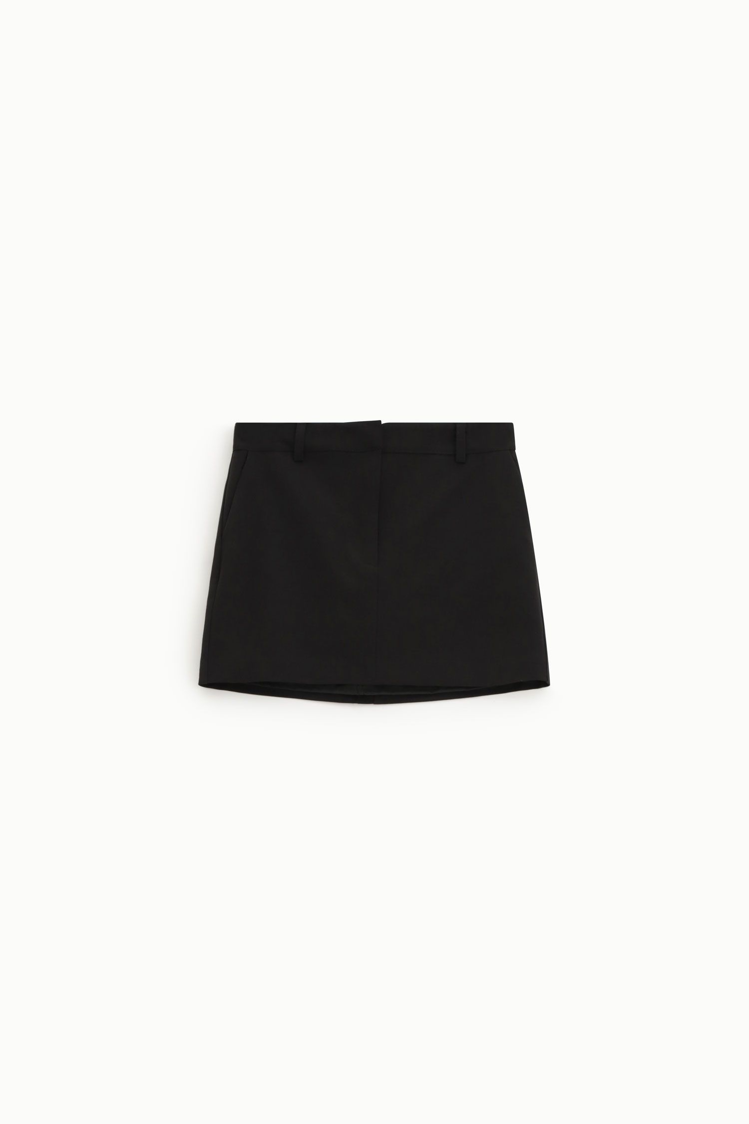 O corte curto e limpo valoriza a silhueta sem perder conforto, enquanto o cós com presilhas permite conjugar com diferentes cintos, adaptando o estilo ao mood do dia. Esta saia tem bolsos discretos, um detalhe prático que acrescenta funcionalidade sem comprometer o design minimalista.