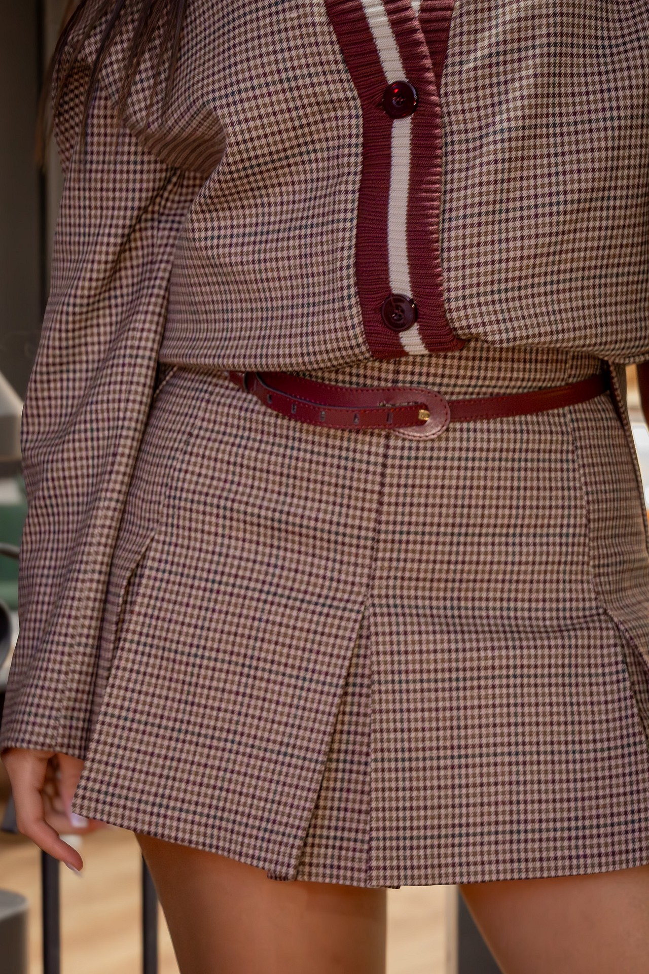 SAIA XADREZ BEGE E BORDÔ COM CINTO IMPERIAL