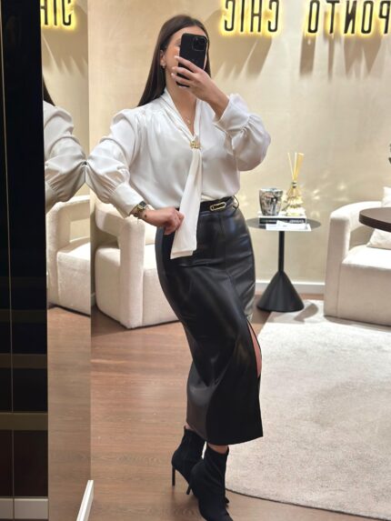 O design plissado confere movimento e leveza ao look, enquanto o formato de saia-calção garante total liberdade e segurança no dia a dia. A cintura apresenta passadeiras e inclui um cinto fino em preto, que define a silhueta e acrescenta modernidade.