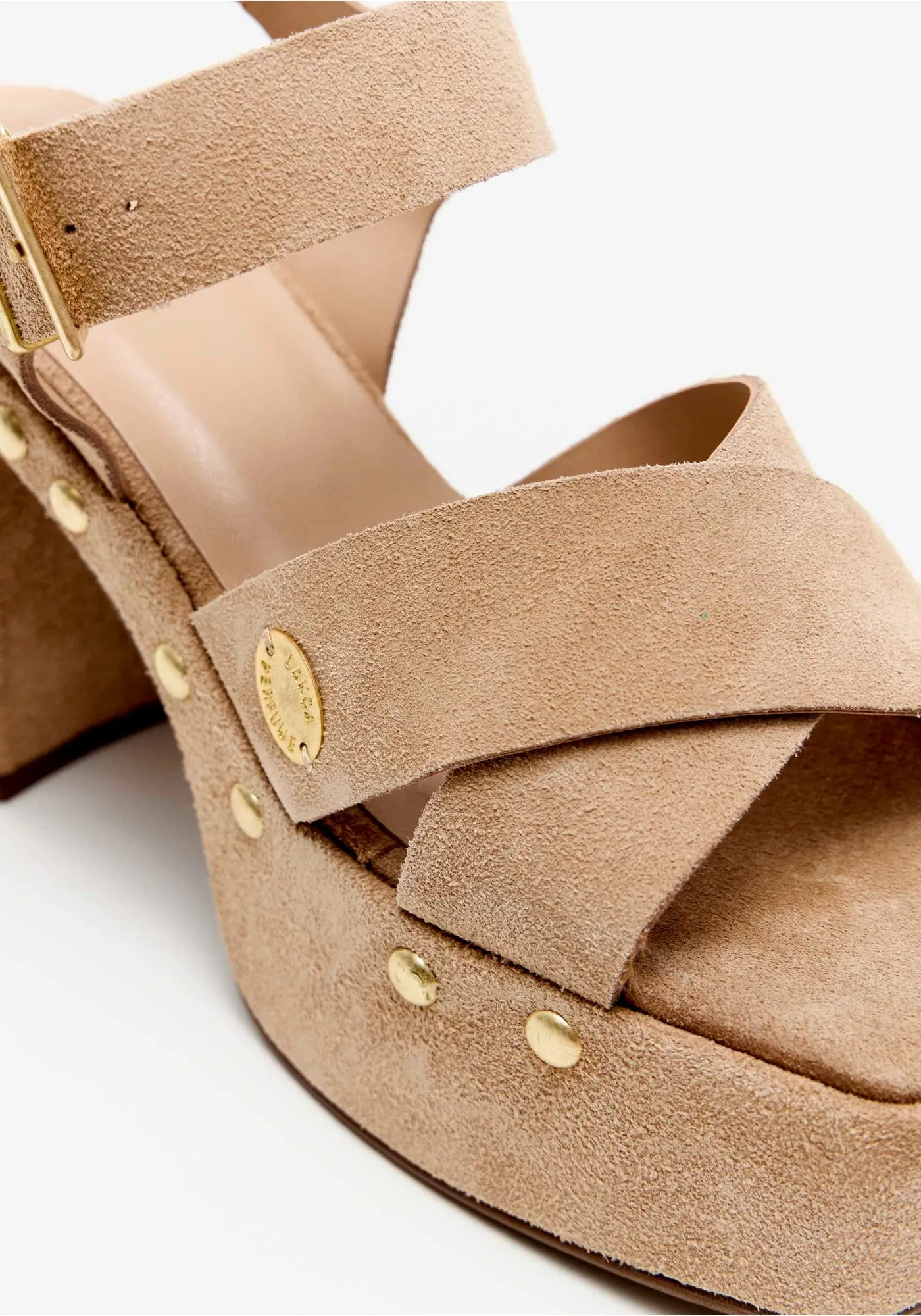 SANDÁLIA BEGE EM COURO LANÇA PERFUME