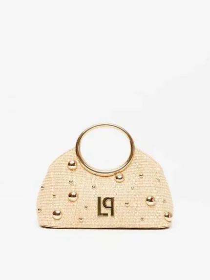 BOLSA DE MÃO EM PALHA COM PEGA DOURADA LANÇA PERFUME