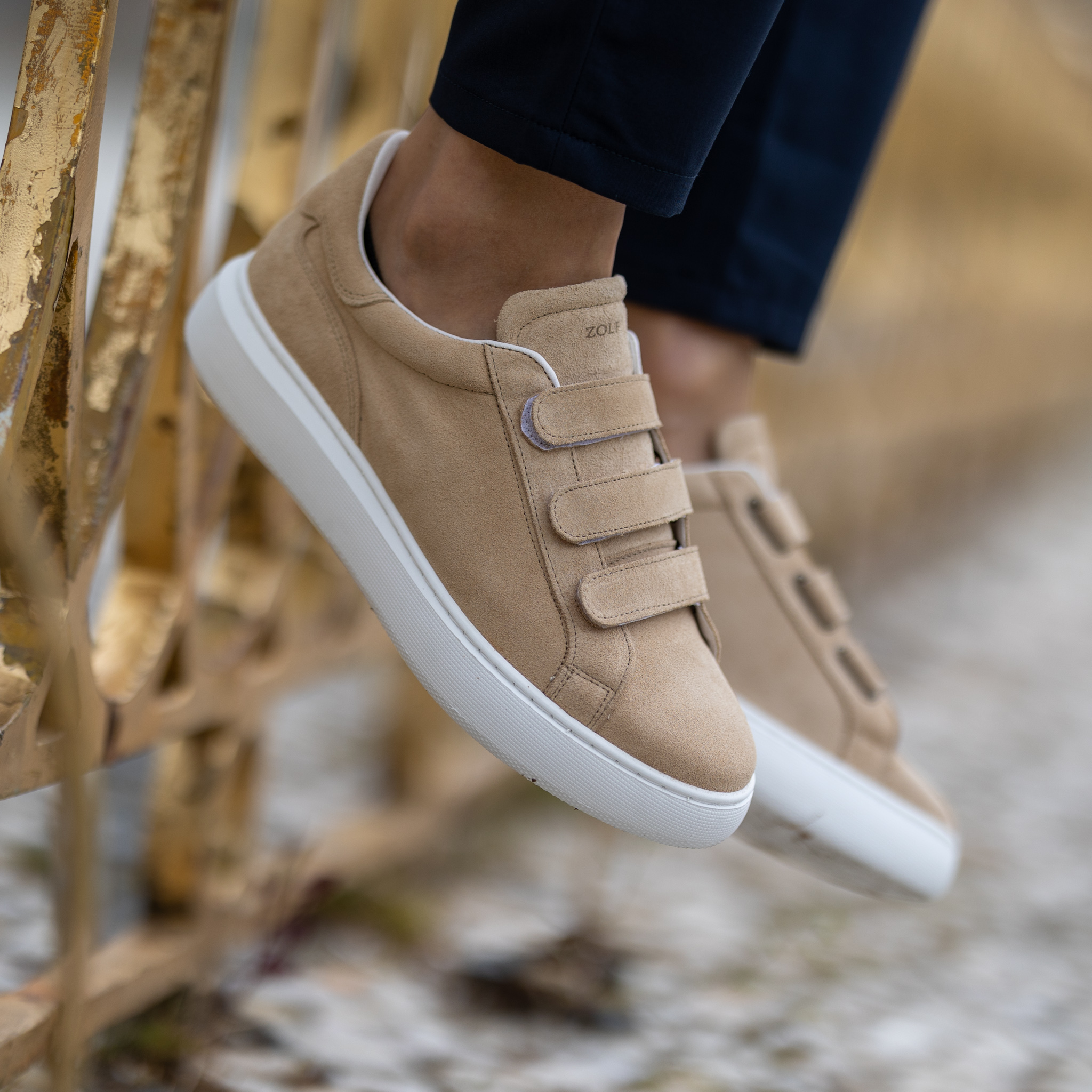 As sapatilhas bege com velcro da Zolf unem conforto, praticidade e um estilo moderno e descomplicado. Fabricadas em pele 100% natural, destacam-se pelo acabamento suave em nobuck, de toque macio e aparência sofisticada.