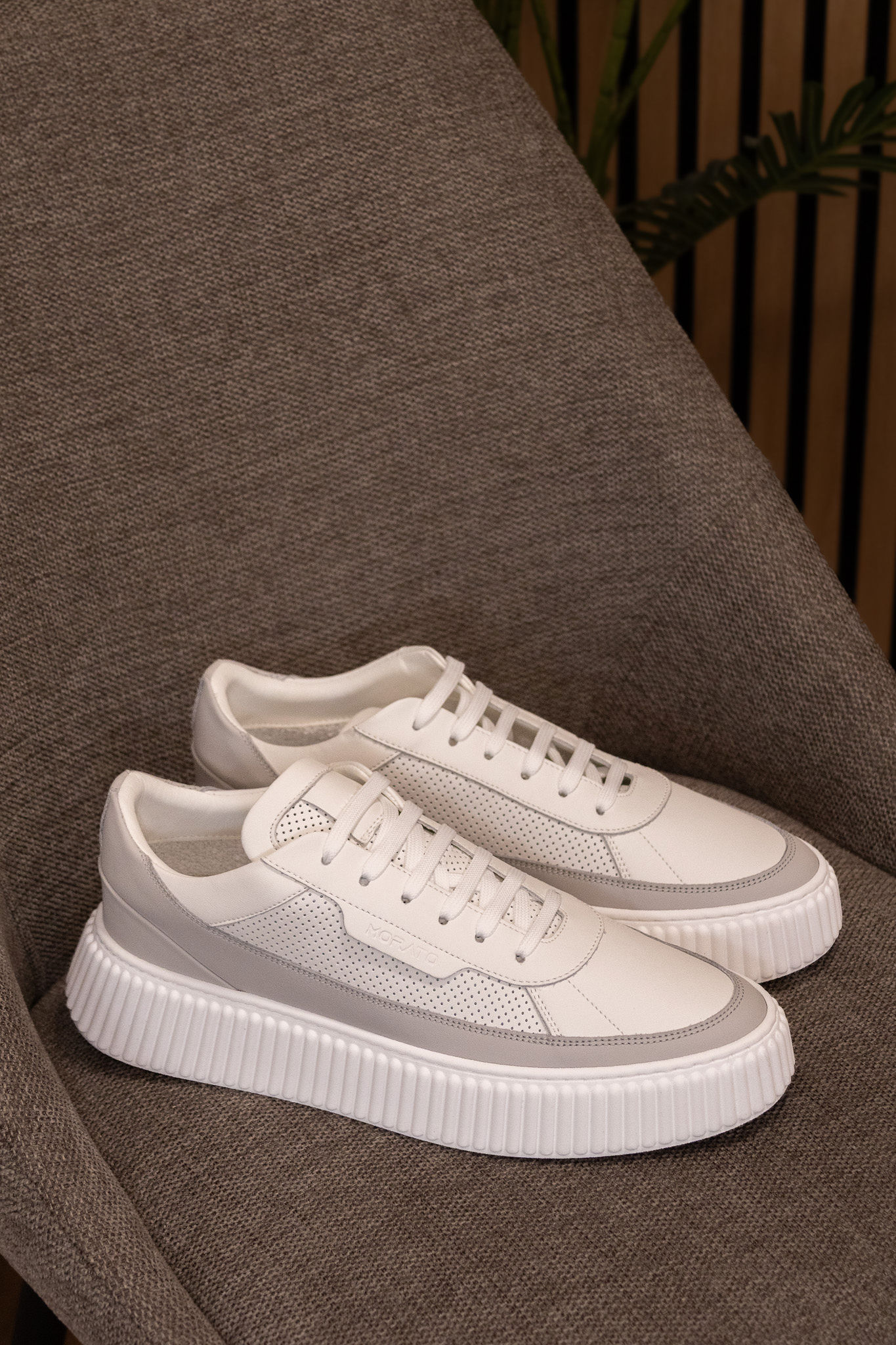 SAPATILHAS BRANCAS E CINZA PERFURADAS ANTONY MORATO