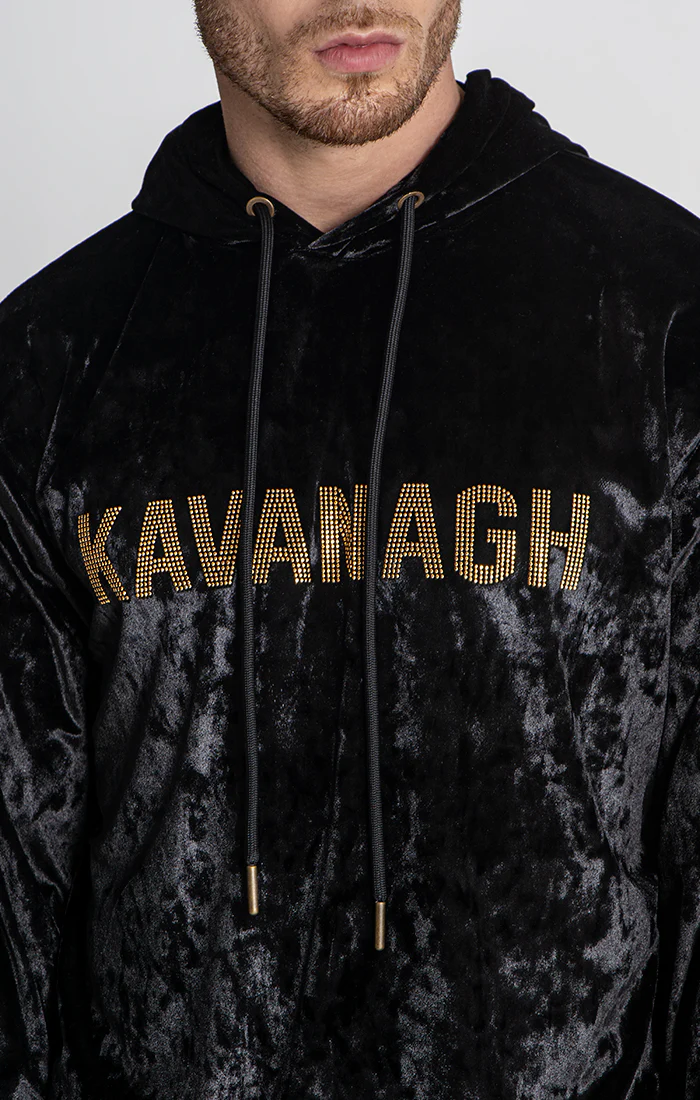 O logótipo KAVANAGH em aplicação dourada na frente adiciona um toque de brilho e exclusividade, enquanto o capuz e o cordão ajustável reforçam o lado descontraído e prático da peça.