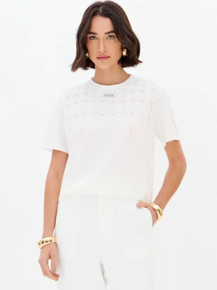 Ideal para combinares com jeans, calças de alfaiataria ou até saias, esta t-shirt é um essencial de guarda-roupa que une simplicidade, qualidade e estilo sofisticado. Uma peça atemporal, perfeita para criar looks descontraídos mas com identidade.
