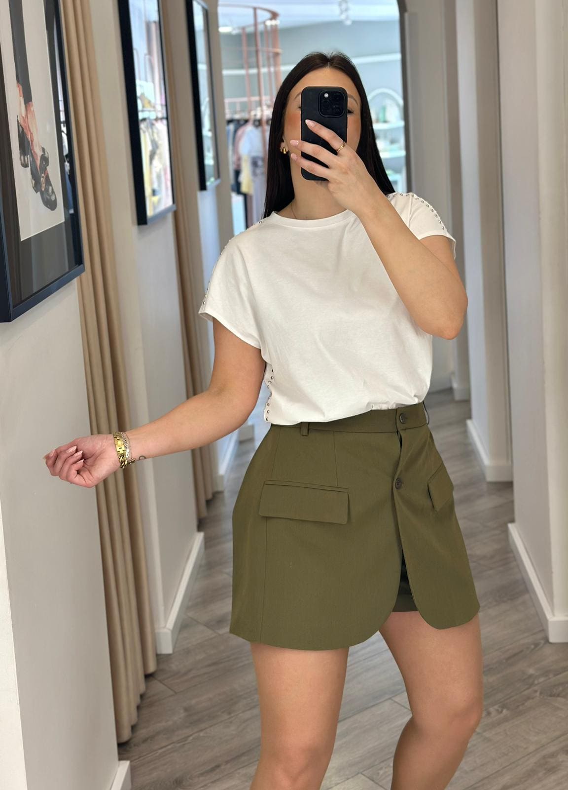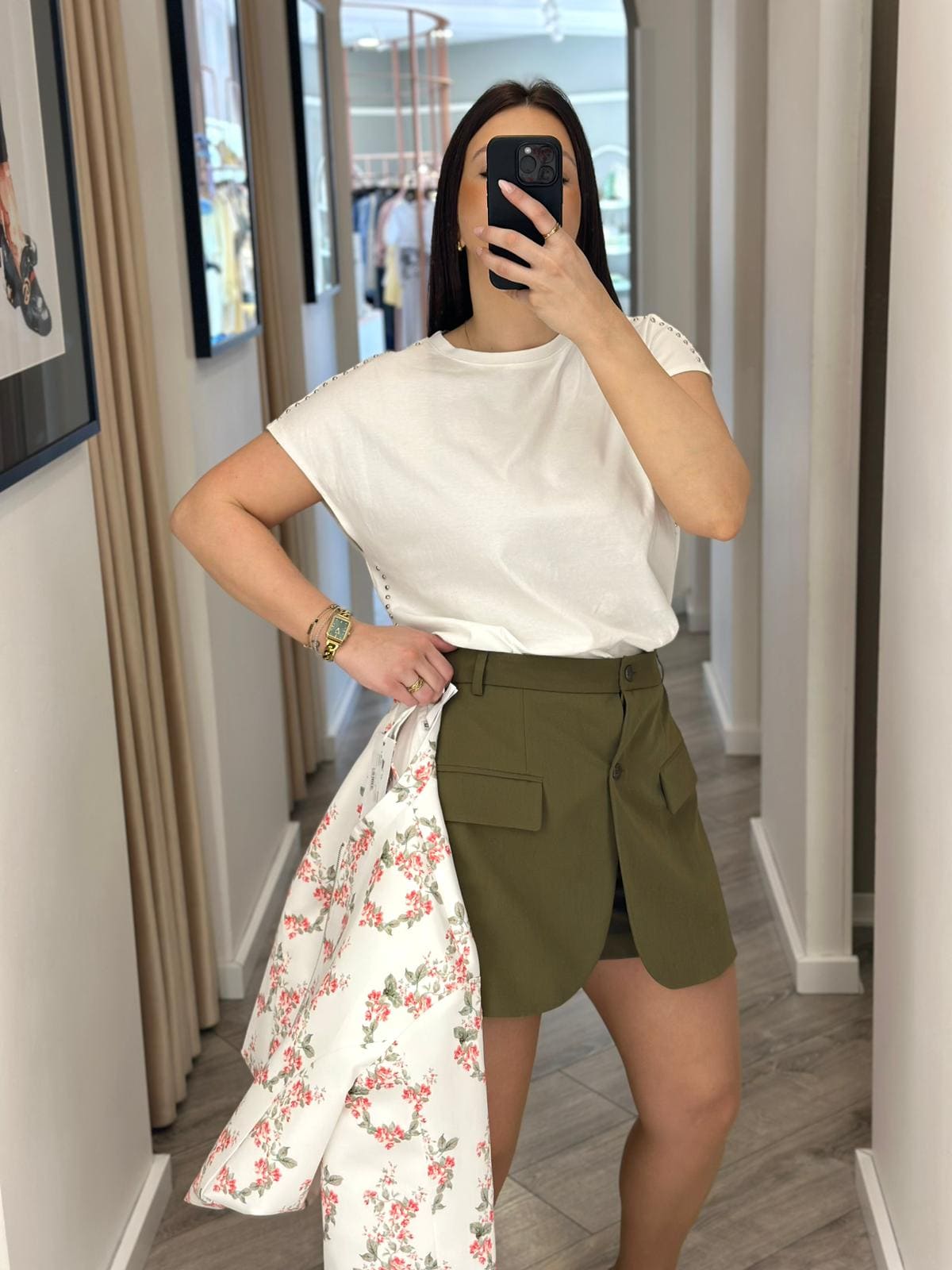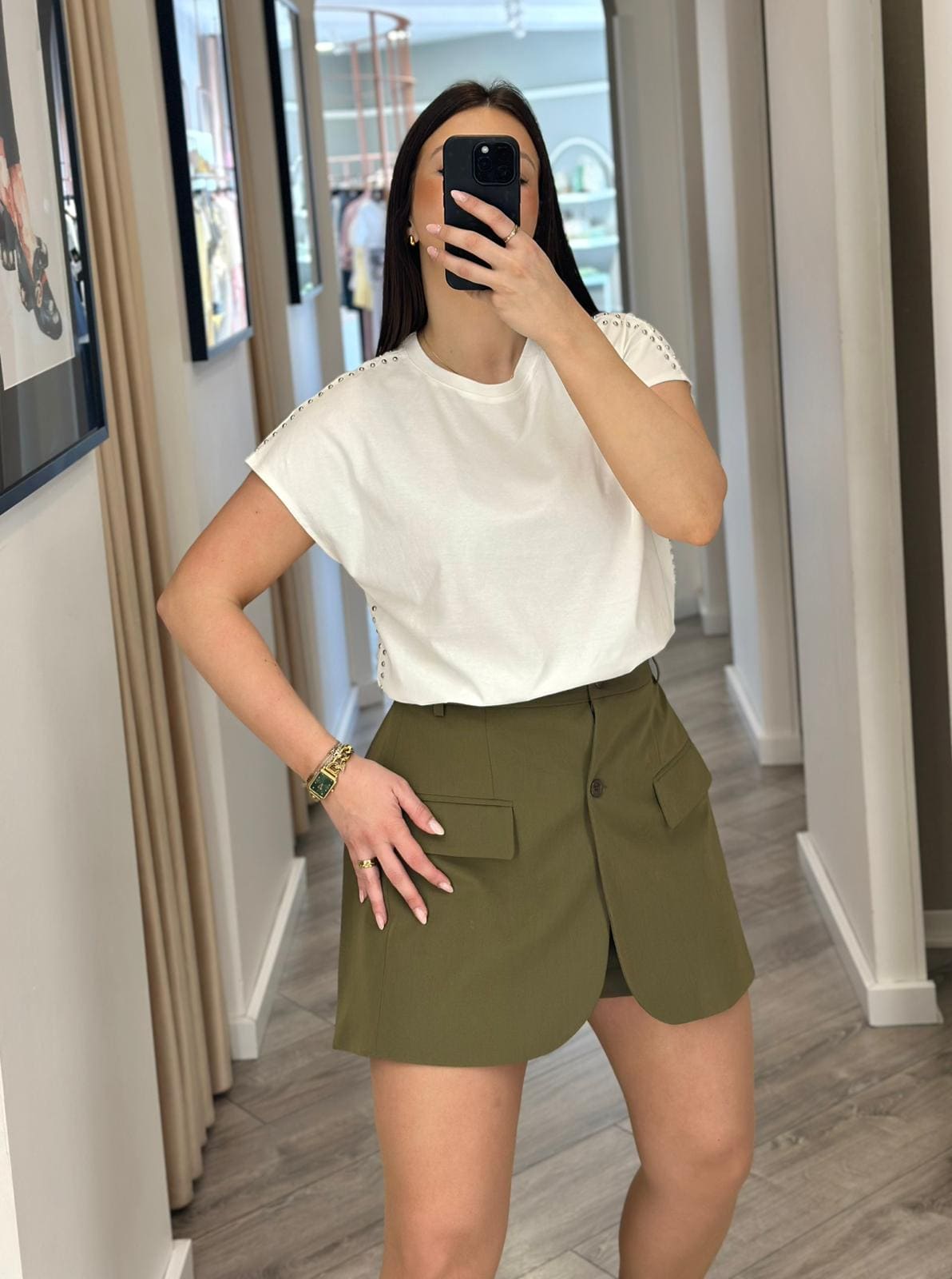 T-SHIRT BRANCA COM APLICAÇÕES METÁLICAS PONTO CHIC