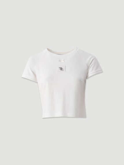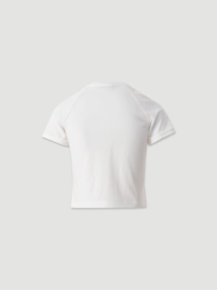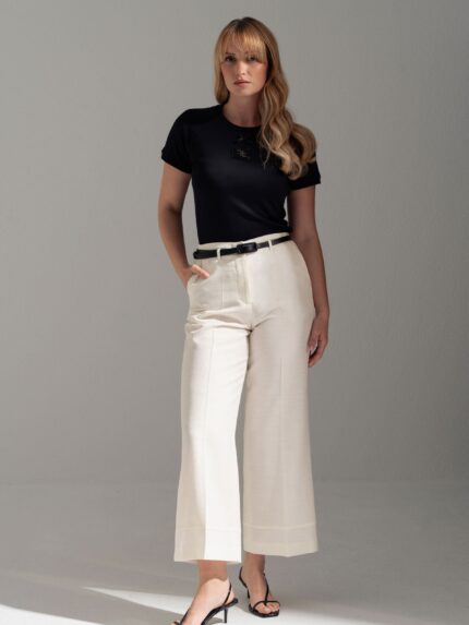 T-shirt branca de corte fluido e contemporâneo, perfeita para compor looks sofisticados com um toque descontraído. O design minimalista é elevado pelo detalhe de nó nas mangas, que cria volume subtil e acrescenta personalidade à peça sem perder elegância.