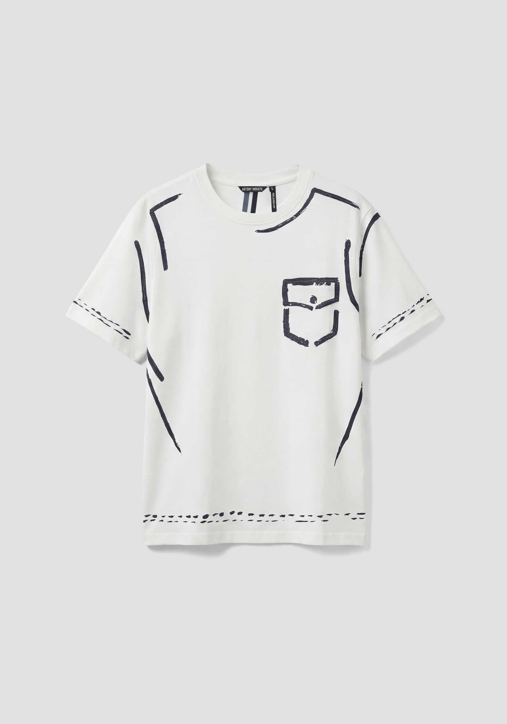 T SHIRT BRANCA COM PADRÃO TRAÇO GRÁFICO ANTONY MORATO