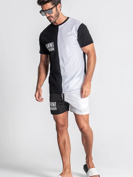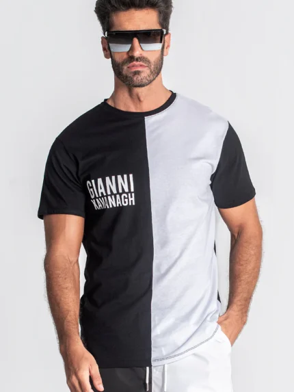 T-SHIRT BICOLOR PRETA E BRANCA COM LOGÓTIPO FRONTAL GIANNI KAVANAGH