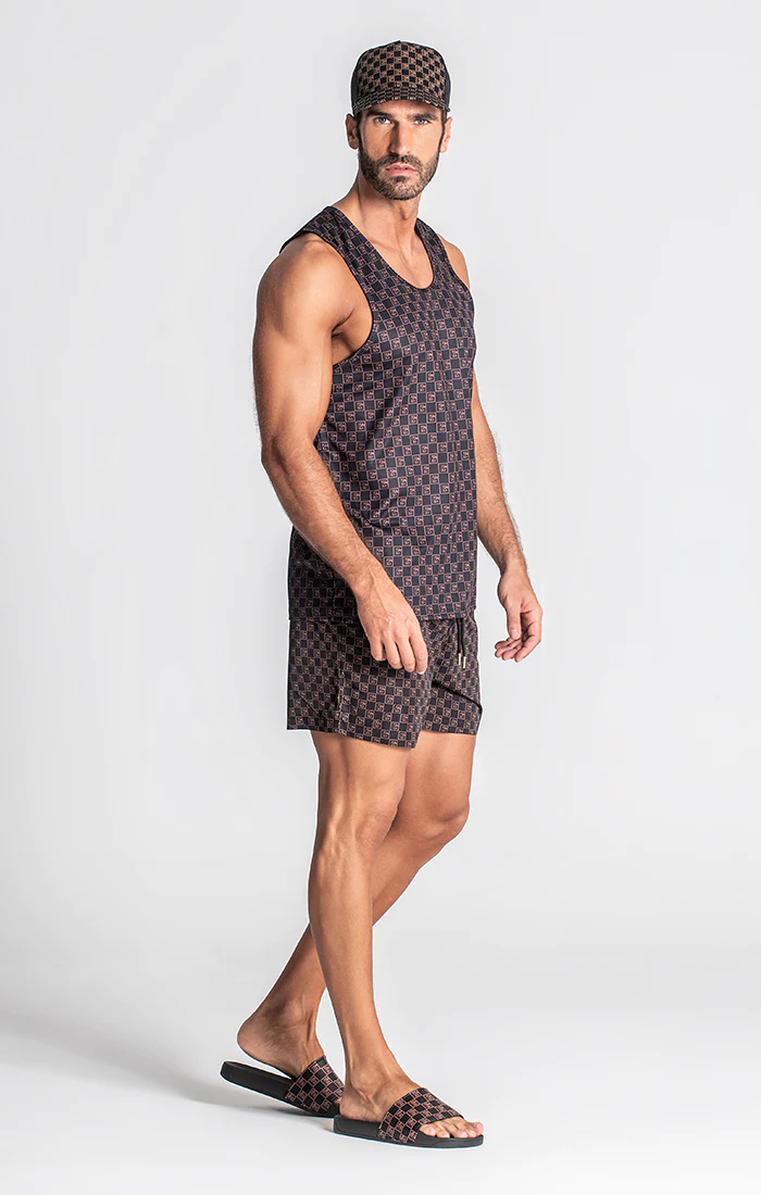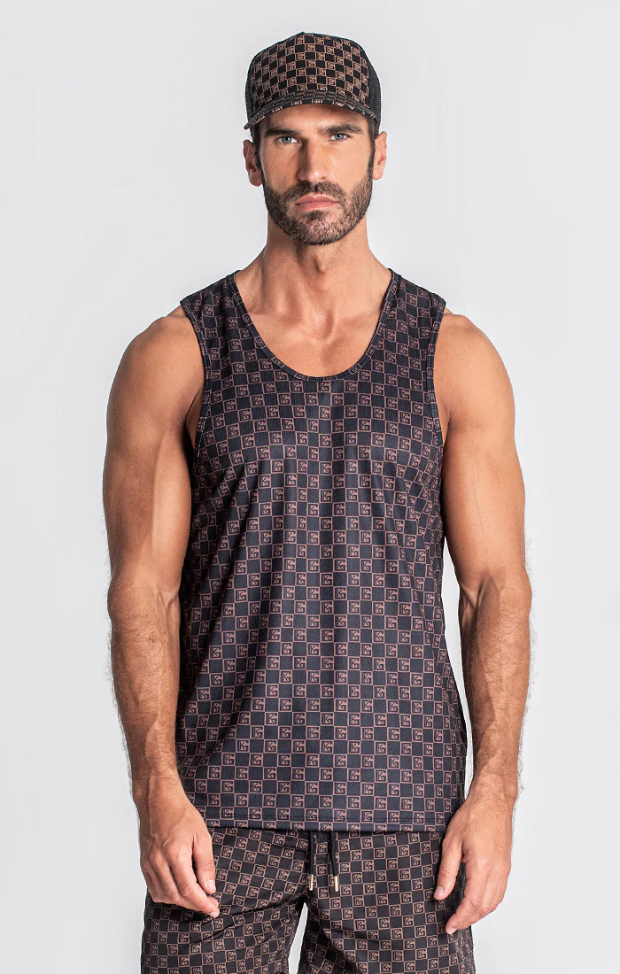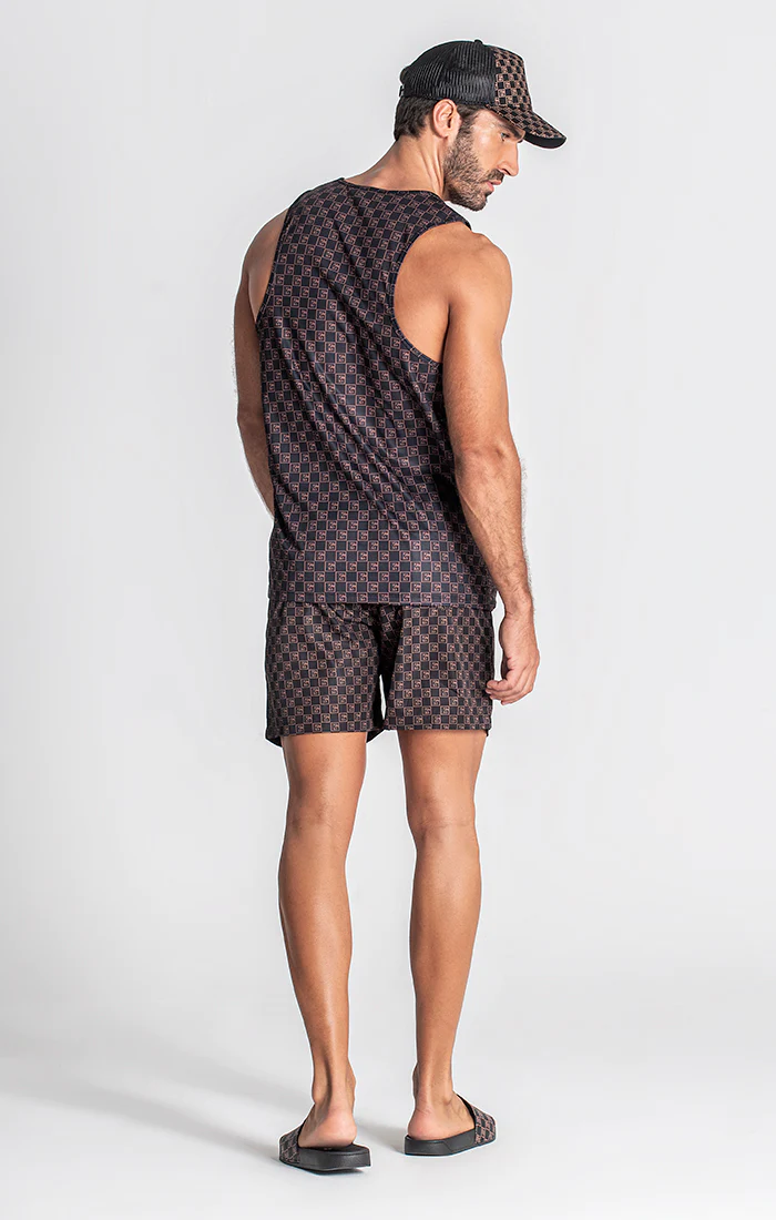 T-SHIRT CAVEADA CASTANHA COM PADRÃO MONOGRAMADO GIANNI KAVANAGH