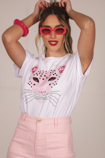 T-SHIRT BRANCA COM ESTAMPADO E APLICAÇÕES MISS YOU
