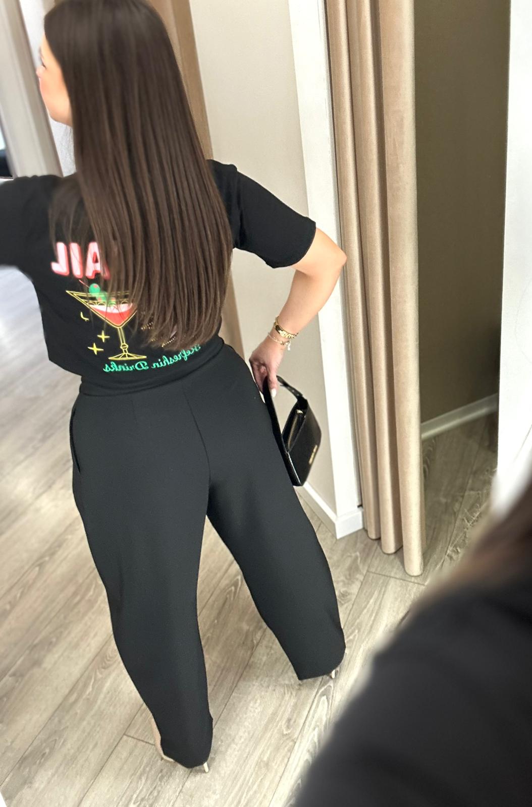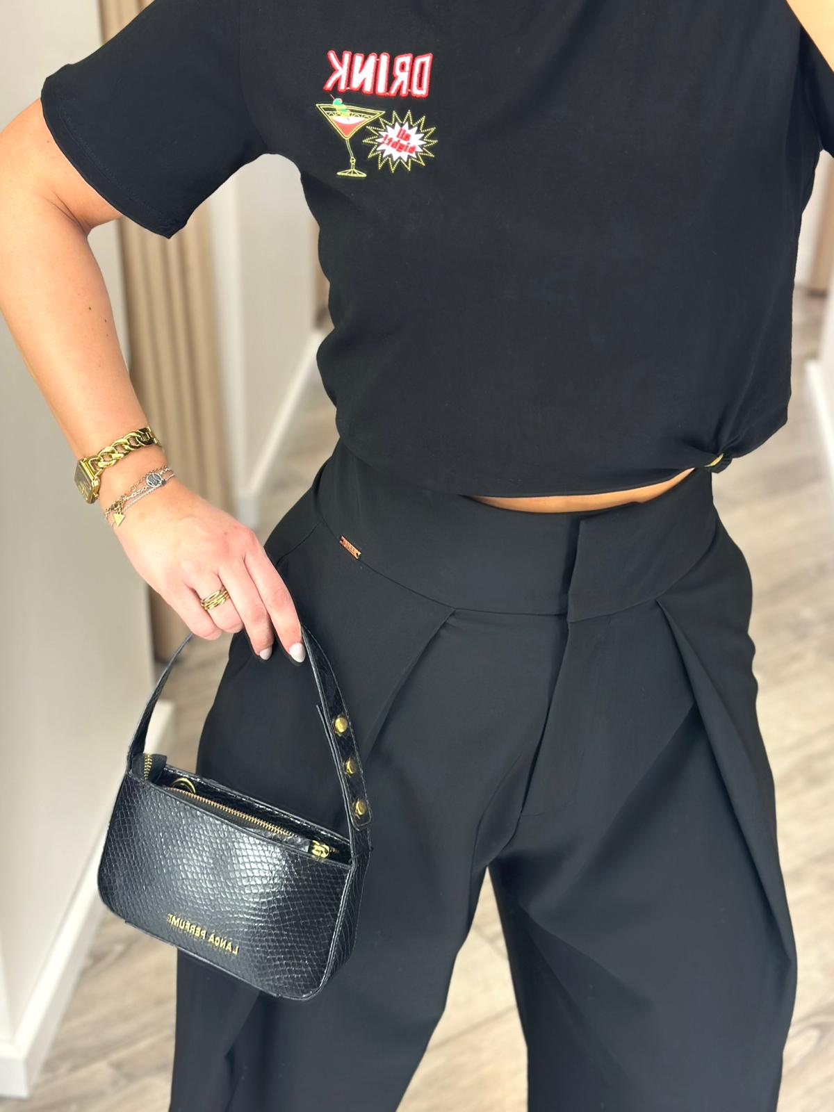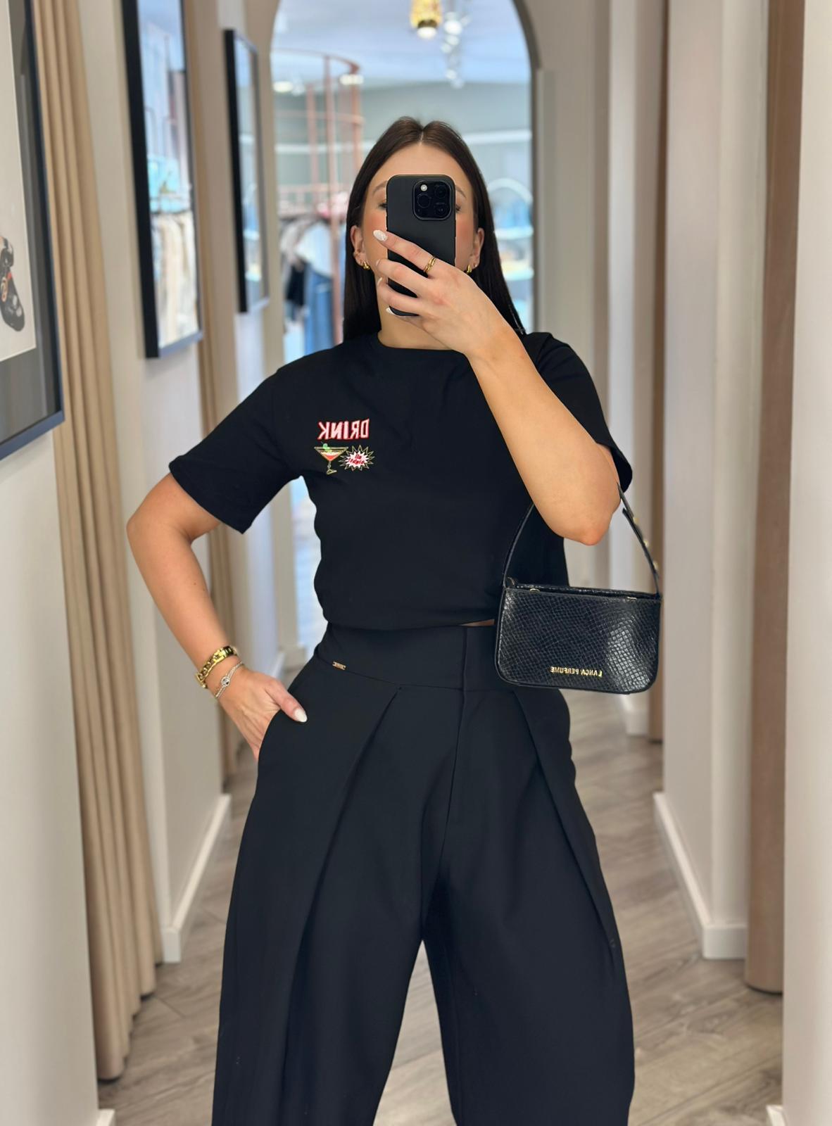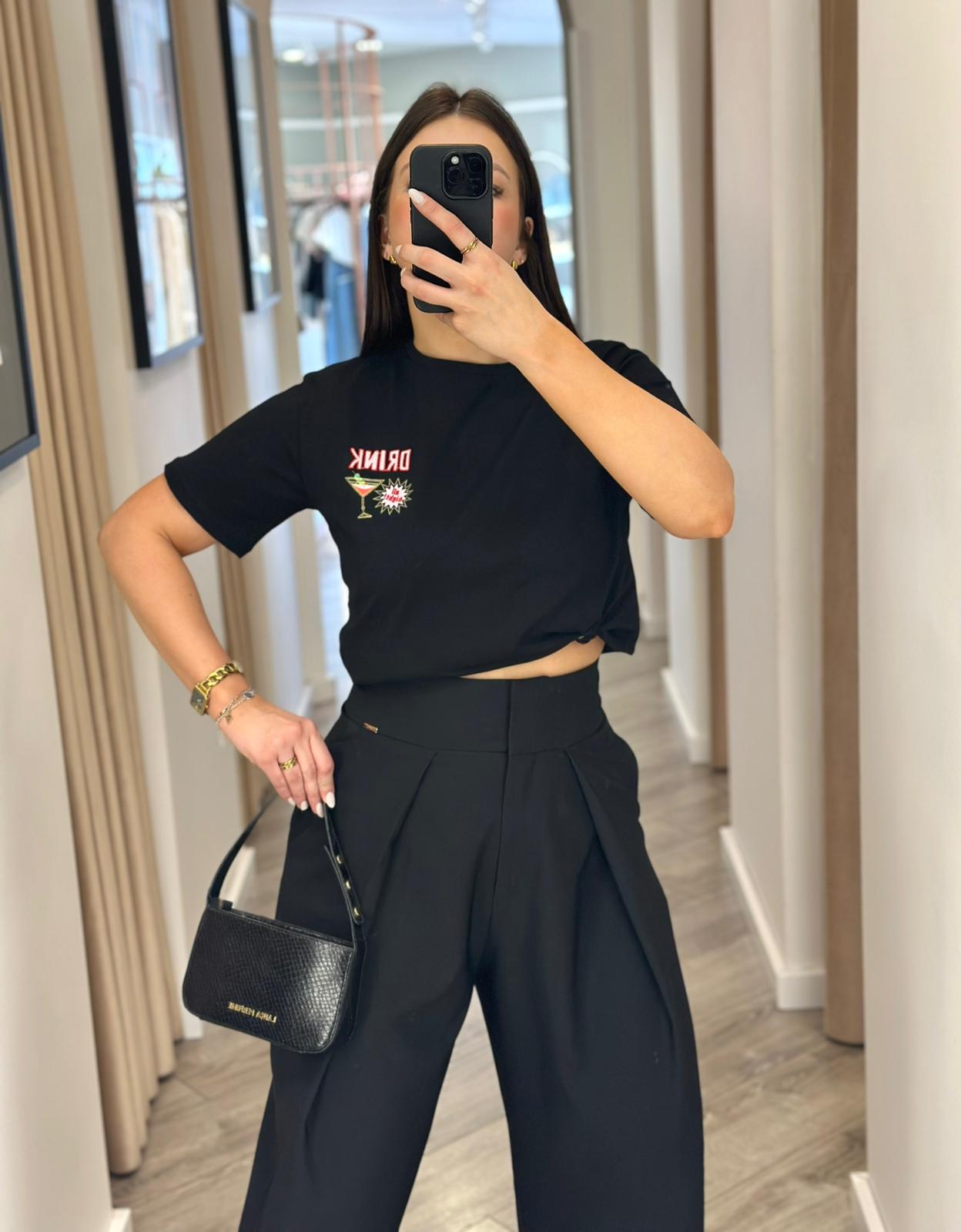 T-SHIRT PRETA COM ESTAMPADO COCKTAIL PONTO CHIC