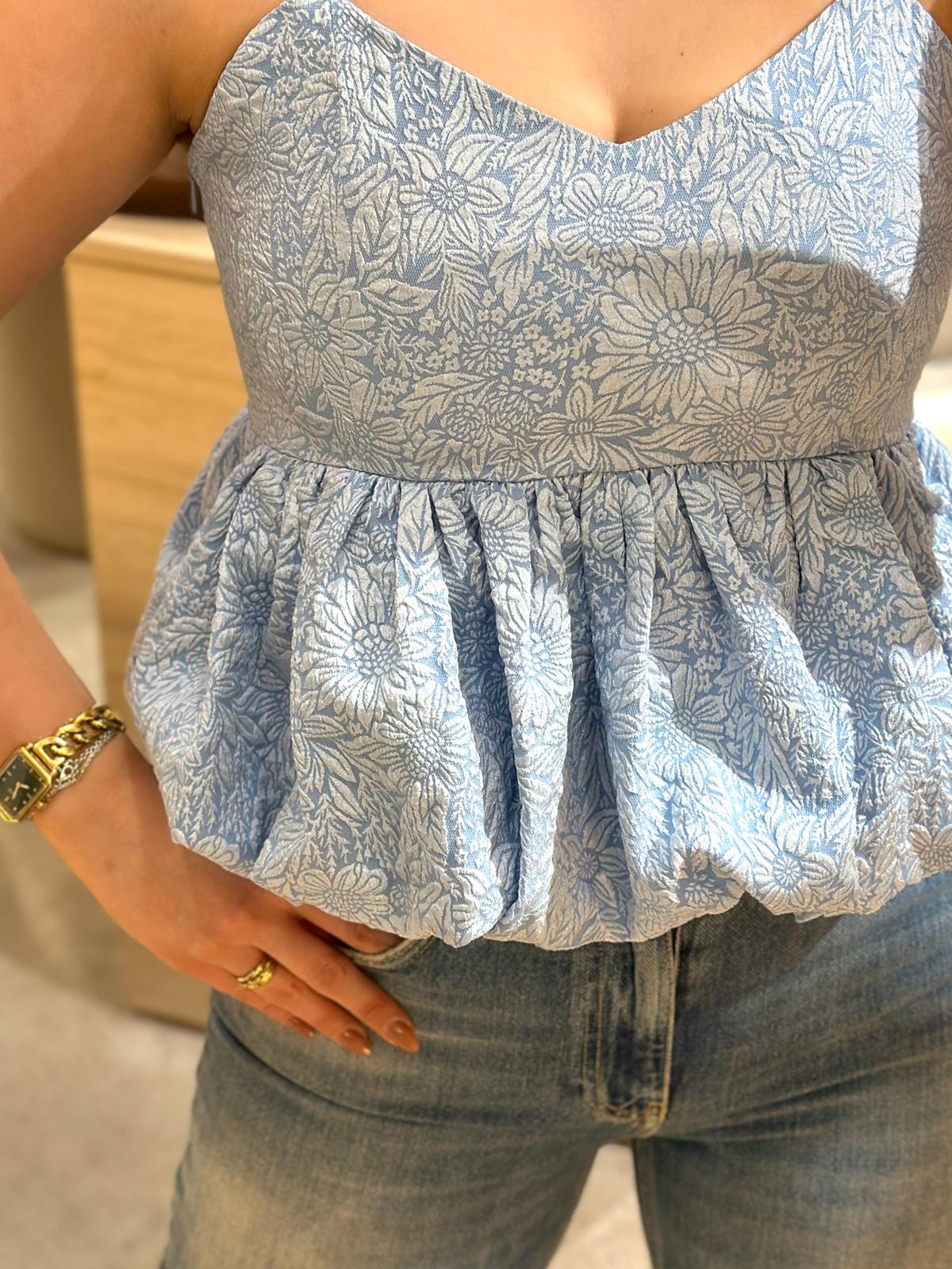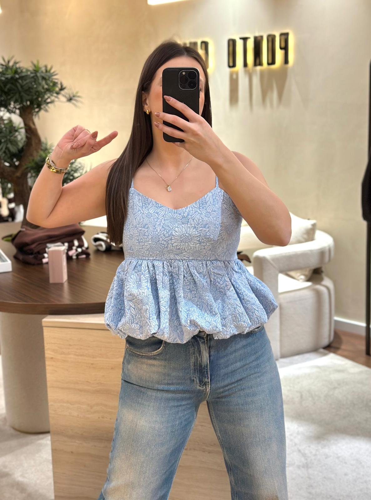 TOP AZUL TECIDO JACQUARD PONTO CHIC