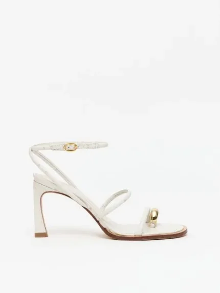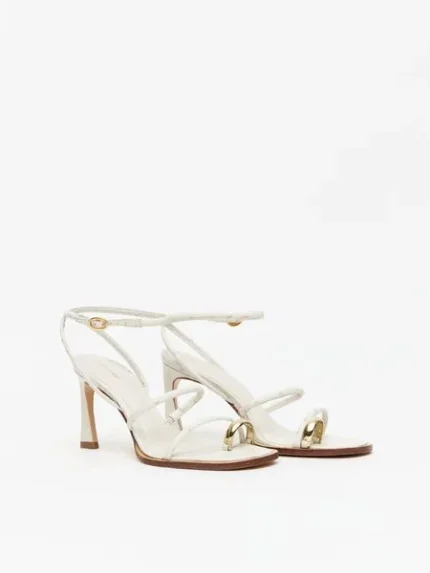 SANDÁLIA OFF WHITE EM PELE COM APLICAÇÃO DOURADA LANÇA PERFUME