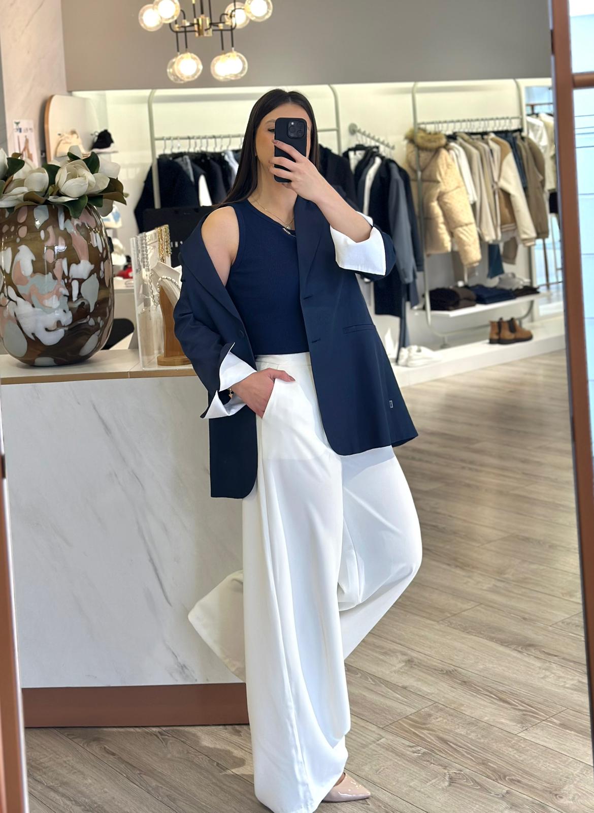Este top azul da Lança Perfume combina elegância e versatilidade num design intemporal. A malha canelada adapta-se ao corpo de forma natural, proporcionando conforto e um fitting feminino.