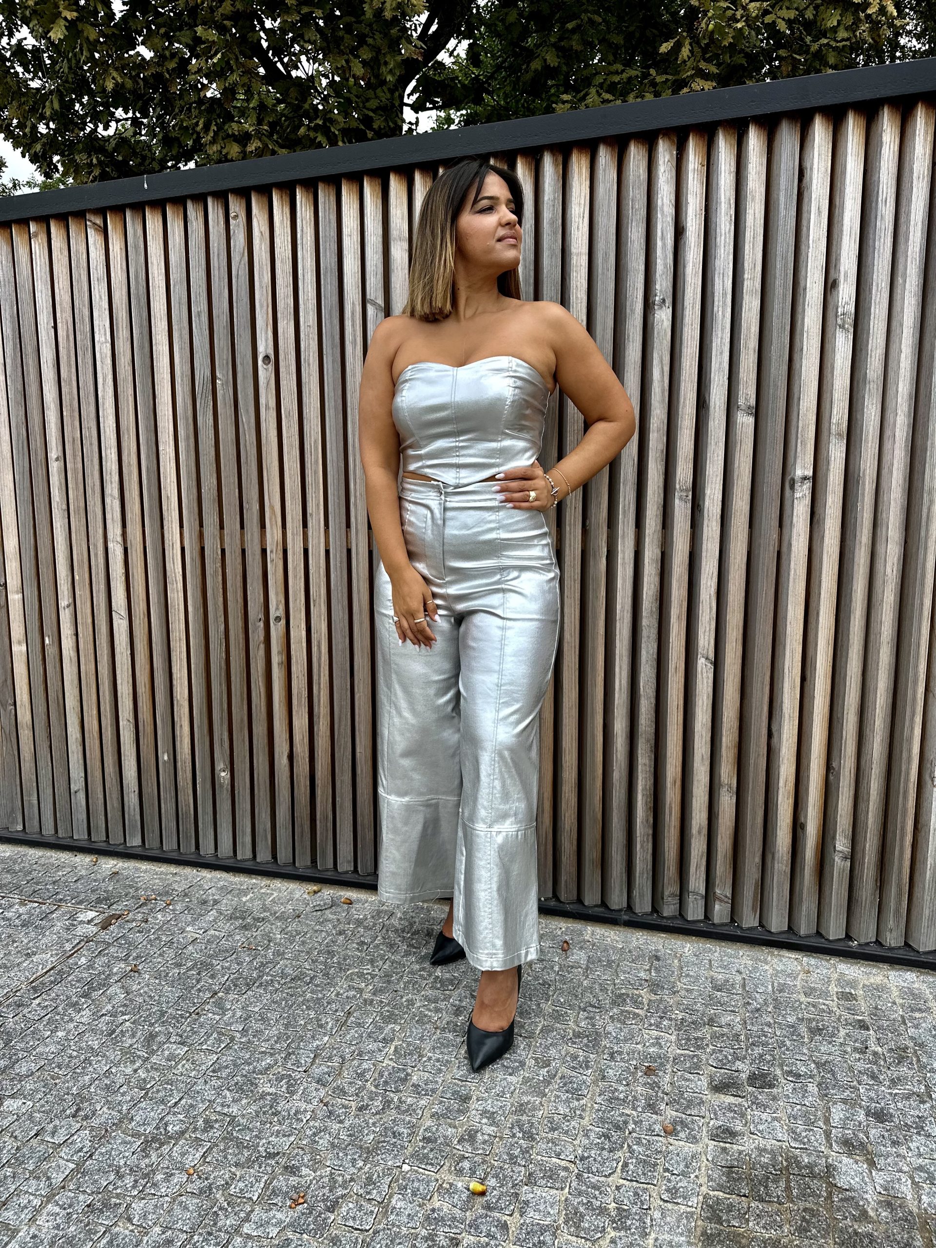 TOP CORSET CINZENTO METALIZADO RINASCIMENTO
