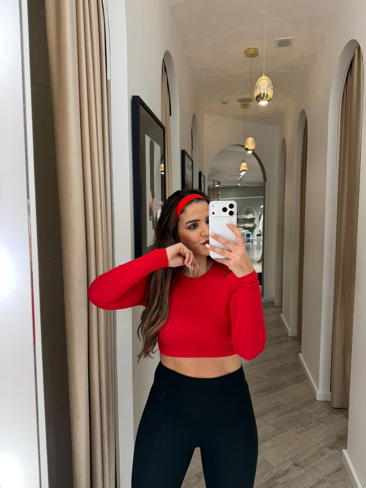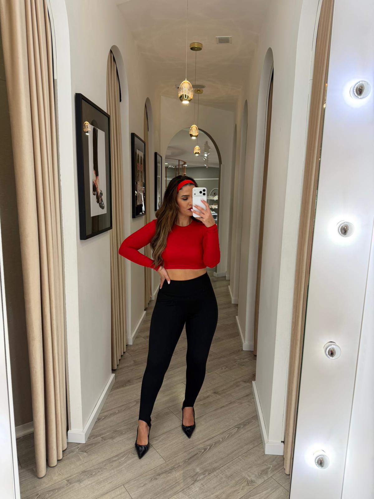 TOP CROPPED VERMELHO MANGA COMPRIDA PONTO CHIC