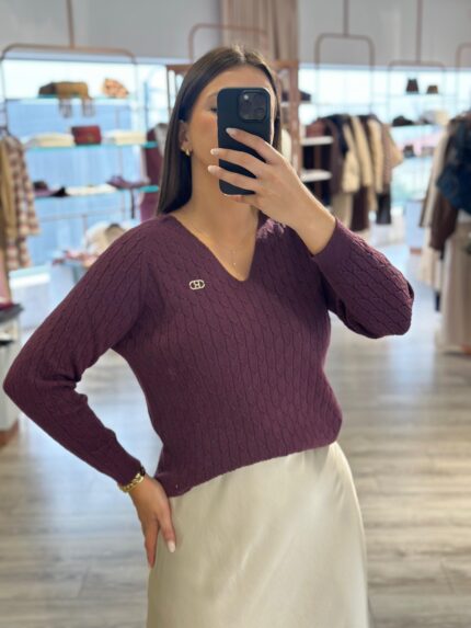 CAMISOLA TRANÇADA BORGONHA COM DECOTE EM V RUGA