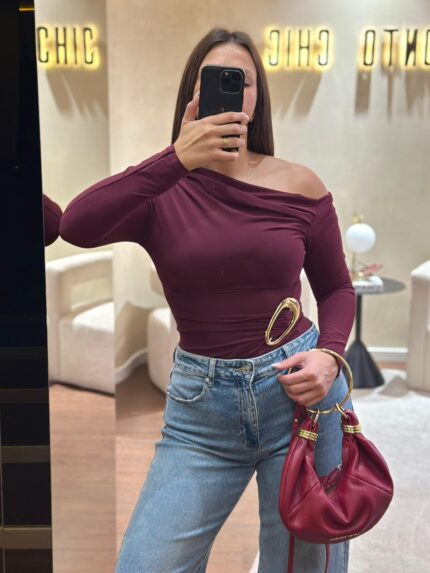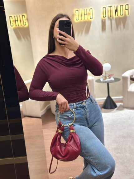 Top cropped confeccionado em pele de carneiro. Corte justo e decote em coração. Forro Sahoco personalizado e zíper traseiro.