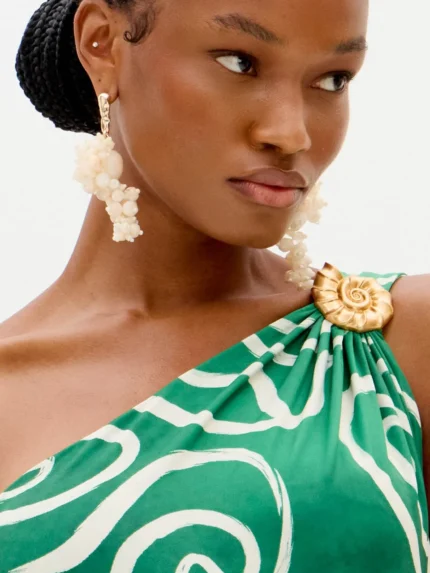 Top estampado que se destaca pelo seu padrão gráfico e vibrante, trazendo um toque moderno e cheio de personalidade ao look. As pregas acrescentam movimento e elegância, criando uma silhueta subtilmente fluida e feminina. O corte sem mangas reforça a leveza da peça, tornando-a ideal para dias mais quentes ou para usar em sobreposição. Com fecho em lágrima nas costas, alia praticidade e sofisticação, sendo uma opção versátil para conjugar com calças ou saias, em coordenados casuais ou mais elegantes.