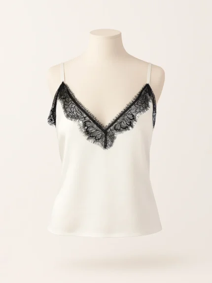 TOP CETIM BRANCO COM RENDA PRETA SAHOCO