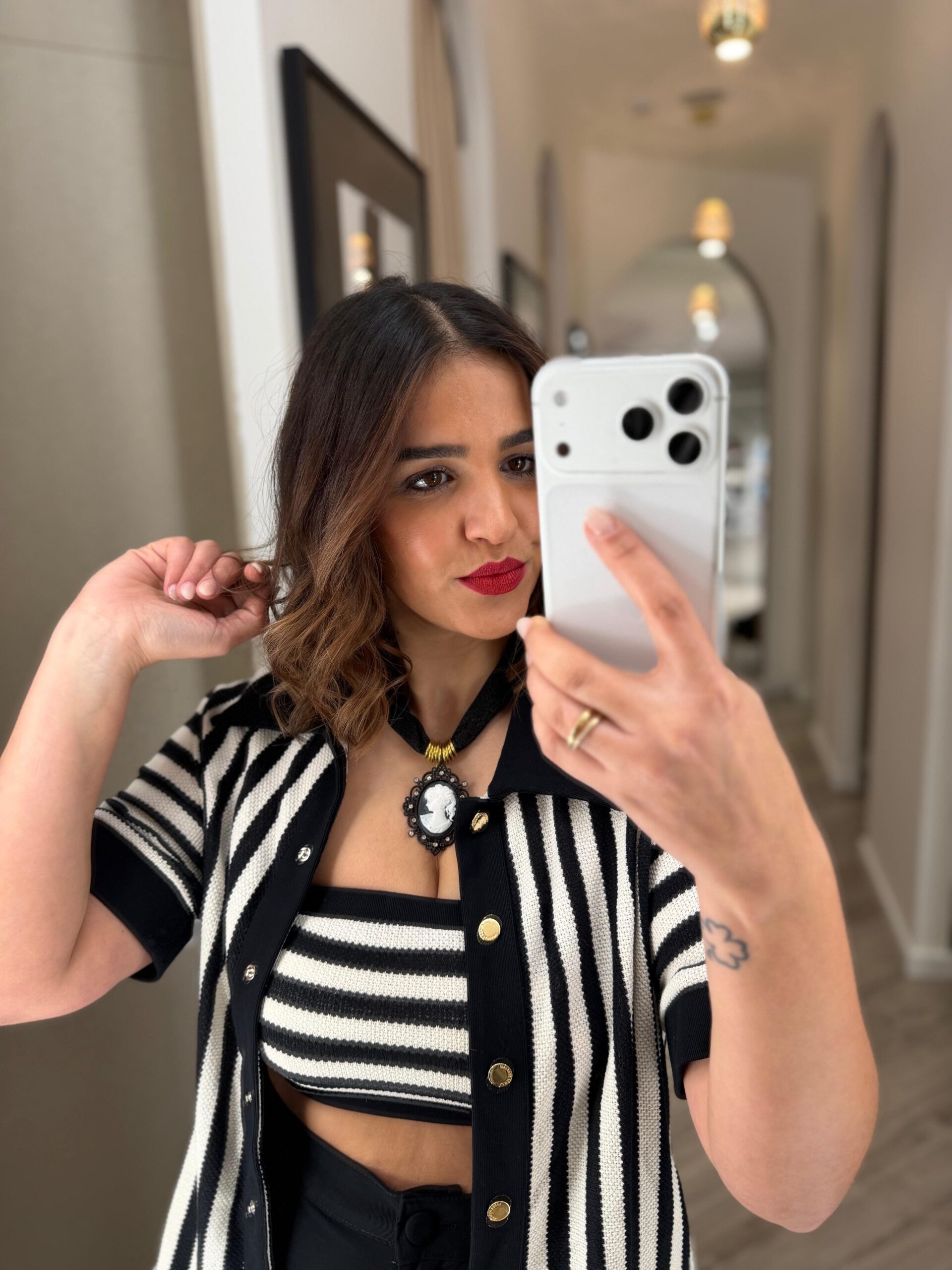 Uma peça statement que funciona tanto em coordenados de verão como em looks urbanos com ganga de cintura subida, criando um equilíbrio entre sensualidade e sofisticação.