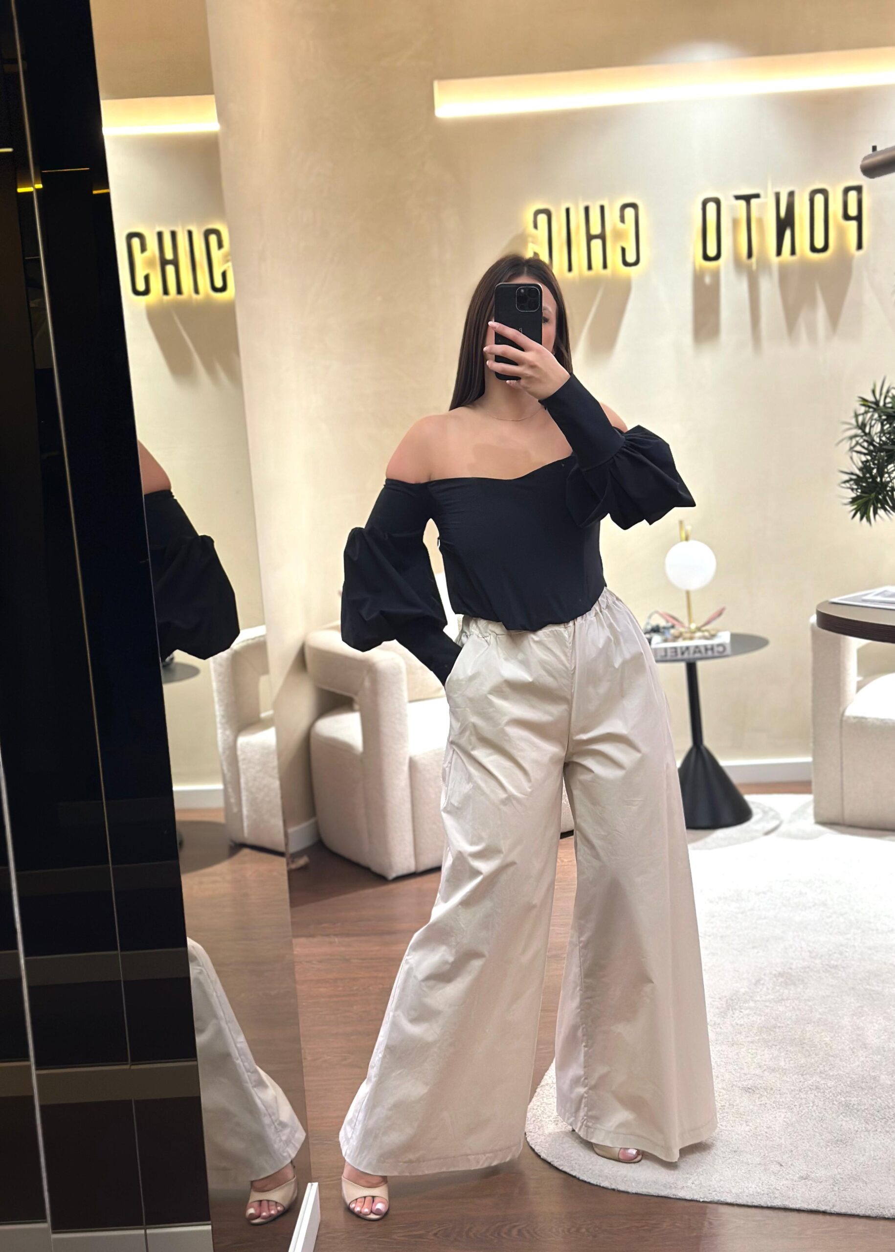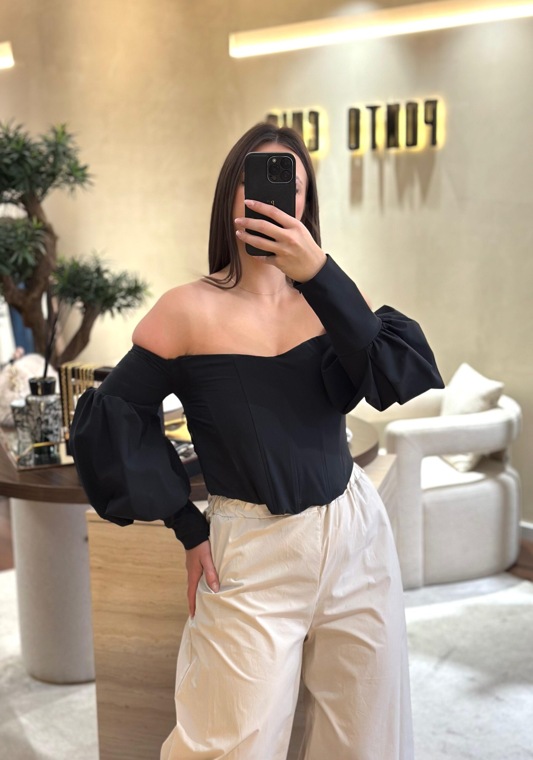 TOP PRETO COM MANGA BUFANTE IMPERIAL