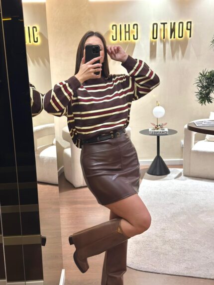 CAMISOLA CROPPED ÀS RISCAS MARINHO E CAMEL SAHOCO