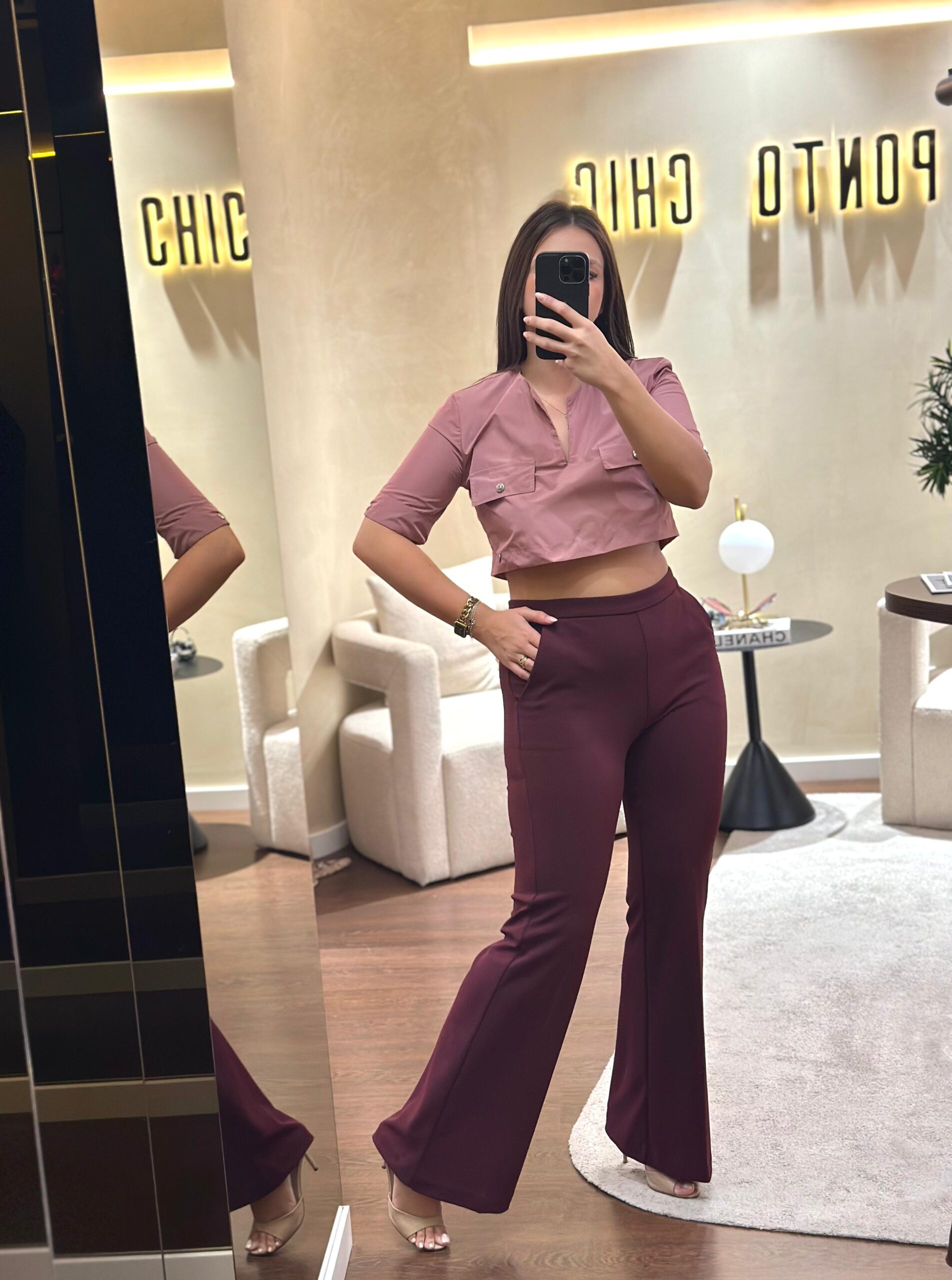 BODY CASTANHO COM DRAPEADO E APLICAÇÃO METÁLICA LANÇA PERFUME