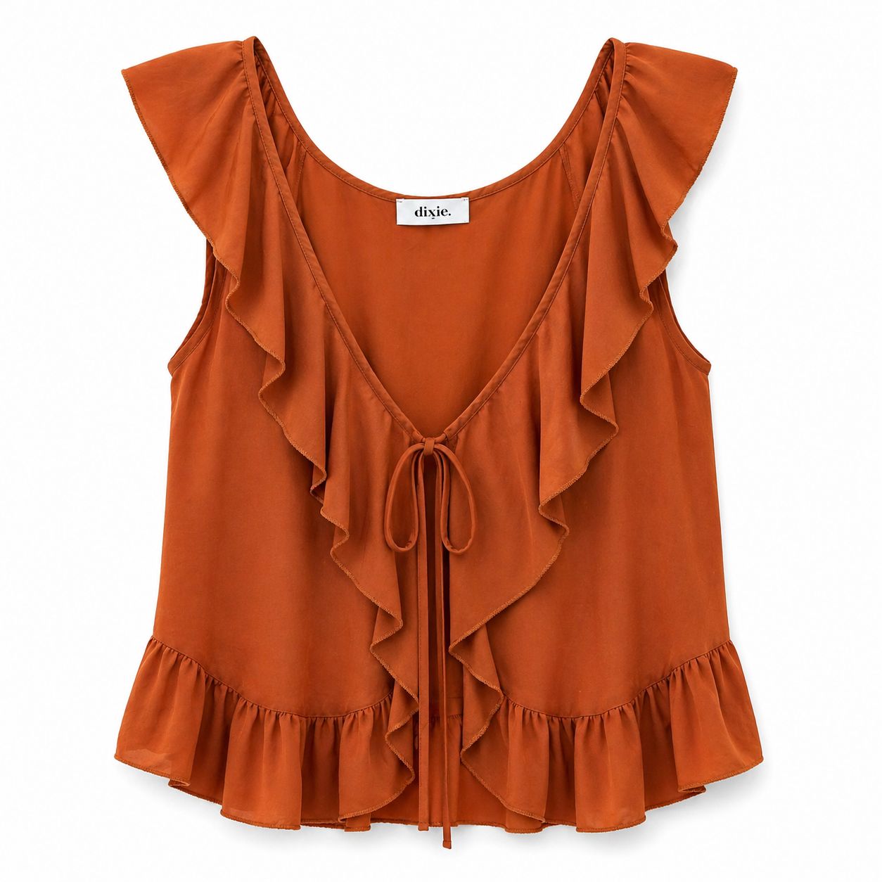 TOP TERRACOTA COM FOLHOS DECOTE EM V DIXIE