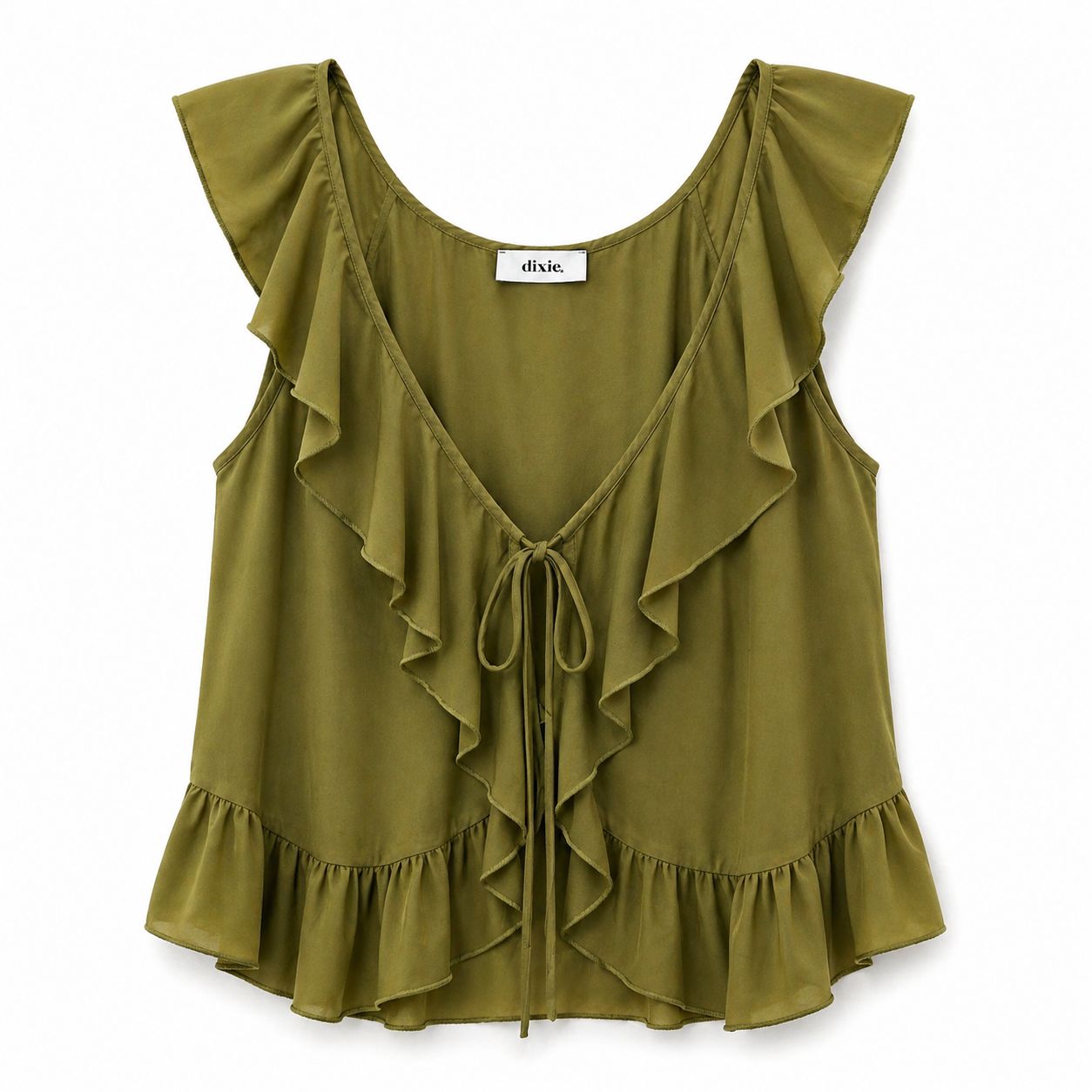 Top verde Dixie com acabamento fluido e delicado, confeccionado em 100% viscose, garantindo leveza e conforto ao longo do dia. A textura suave e o caimento solto tornam esta peça perfeita para dias mais quentes.
