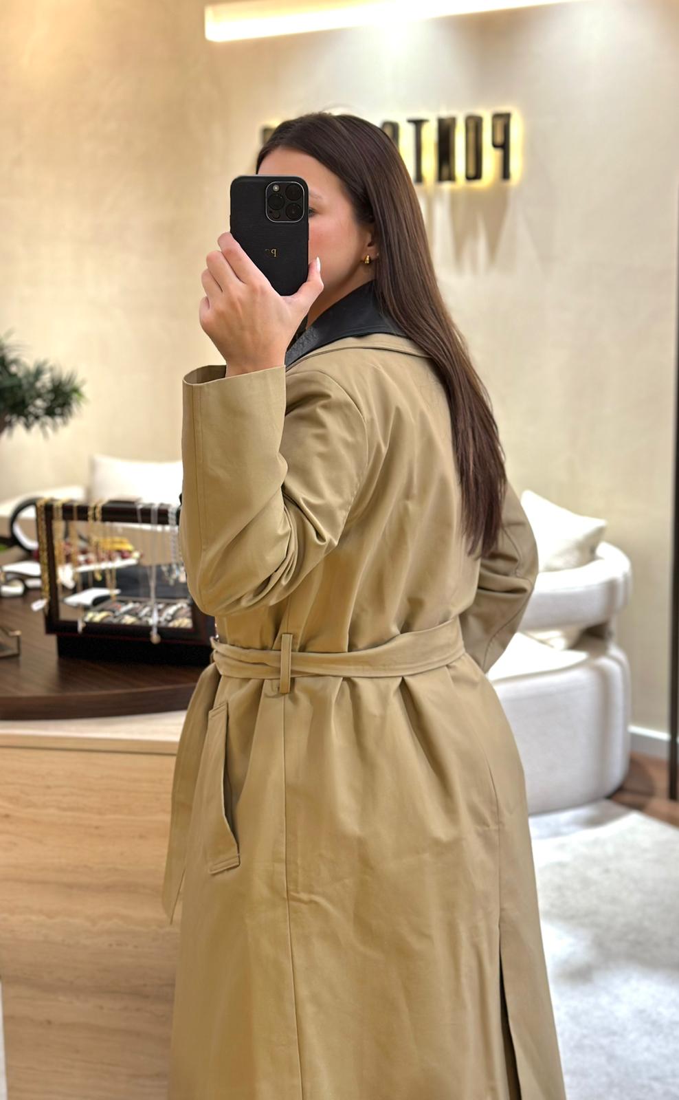 TRENCH BEGE COM GOLA CONTRASTANTE PRETA ELEH