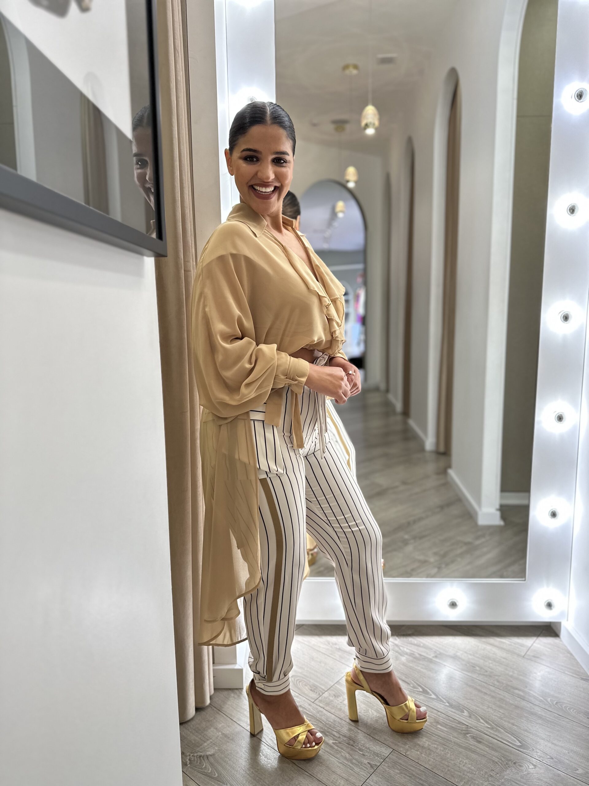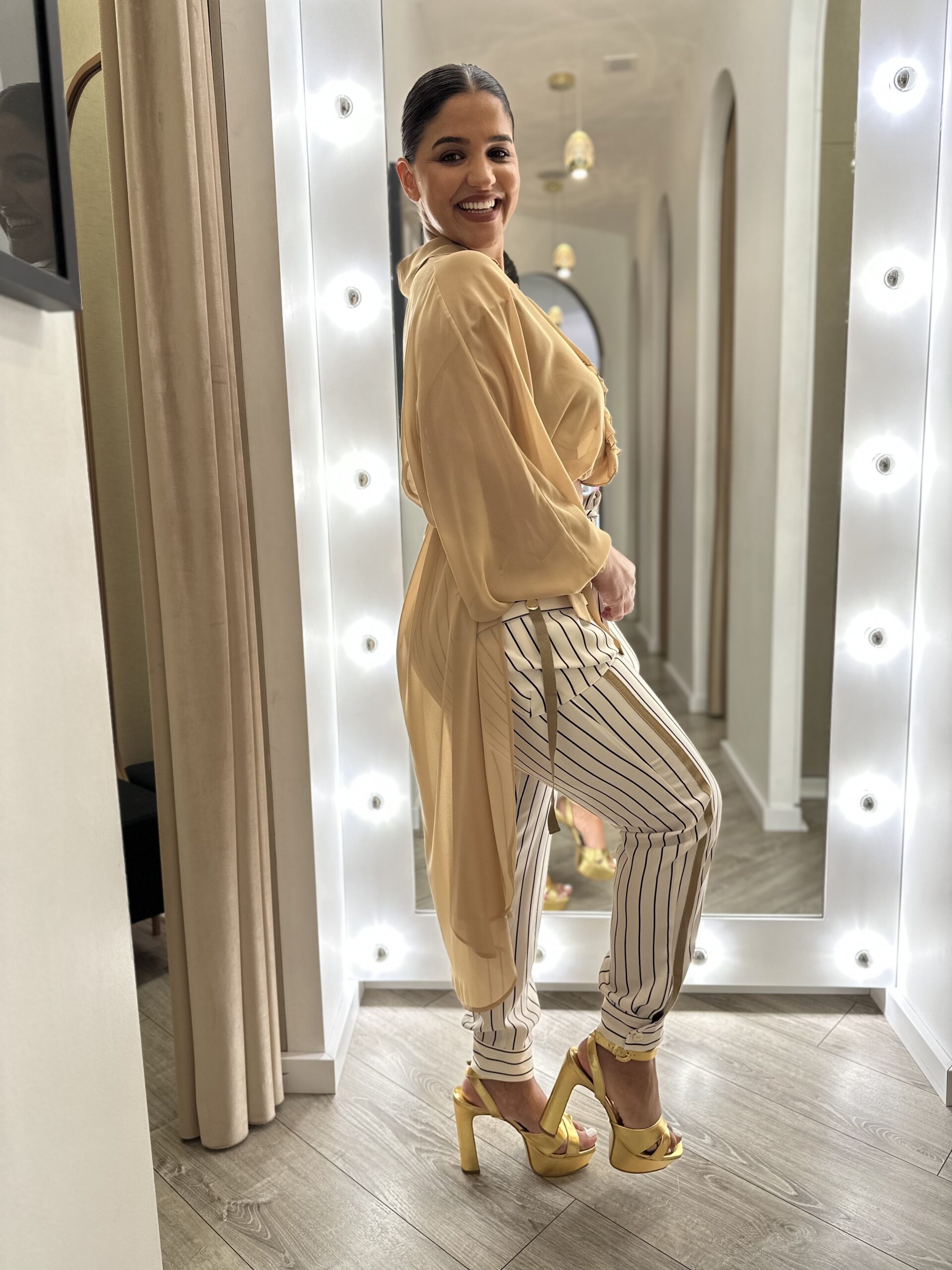 Uma túnica fluida e elegante da Gil Santucci, pensada para looks sofisticados com um toque romântico.