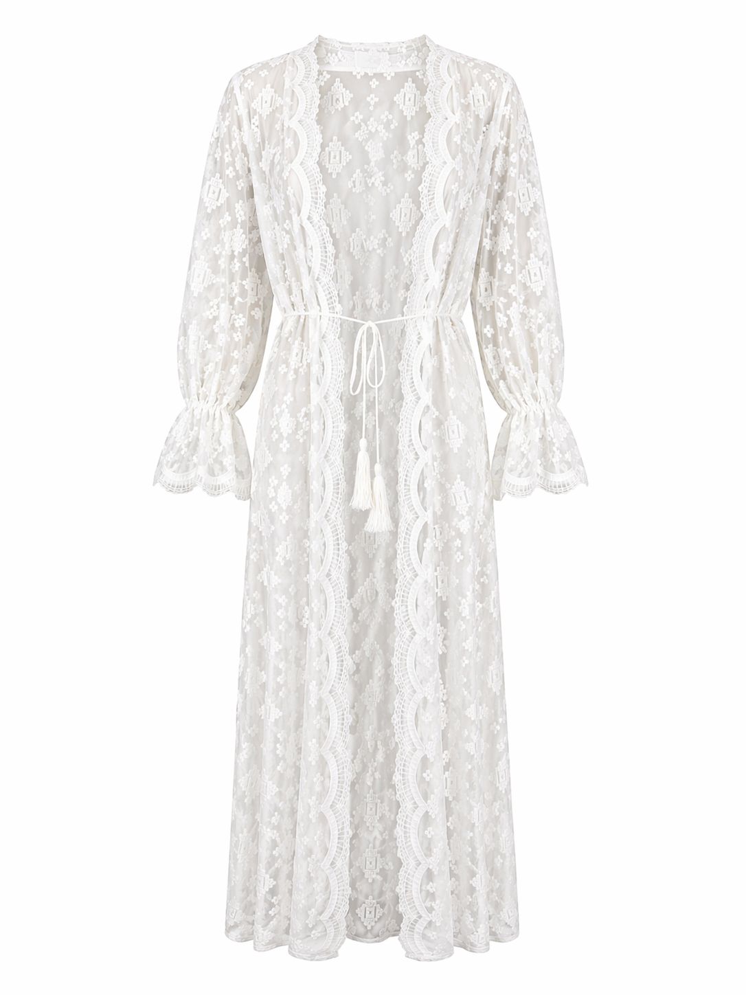 TÚNICA COMPRIDA EM RENDA COM CINTO PONTO CHIC