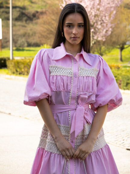 O design destaca-se pela gola ampla com efeito lenço integrado, um detalhe diferenciador que acrescenta charme e um ar contemporâneo à peça. O corte é descontraído, com mangas compridas e acabamento simples, garantindo um caimento elegante sem perder conforto.