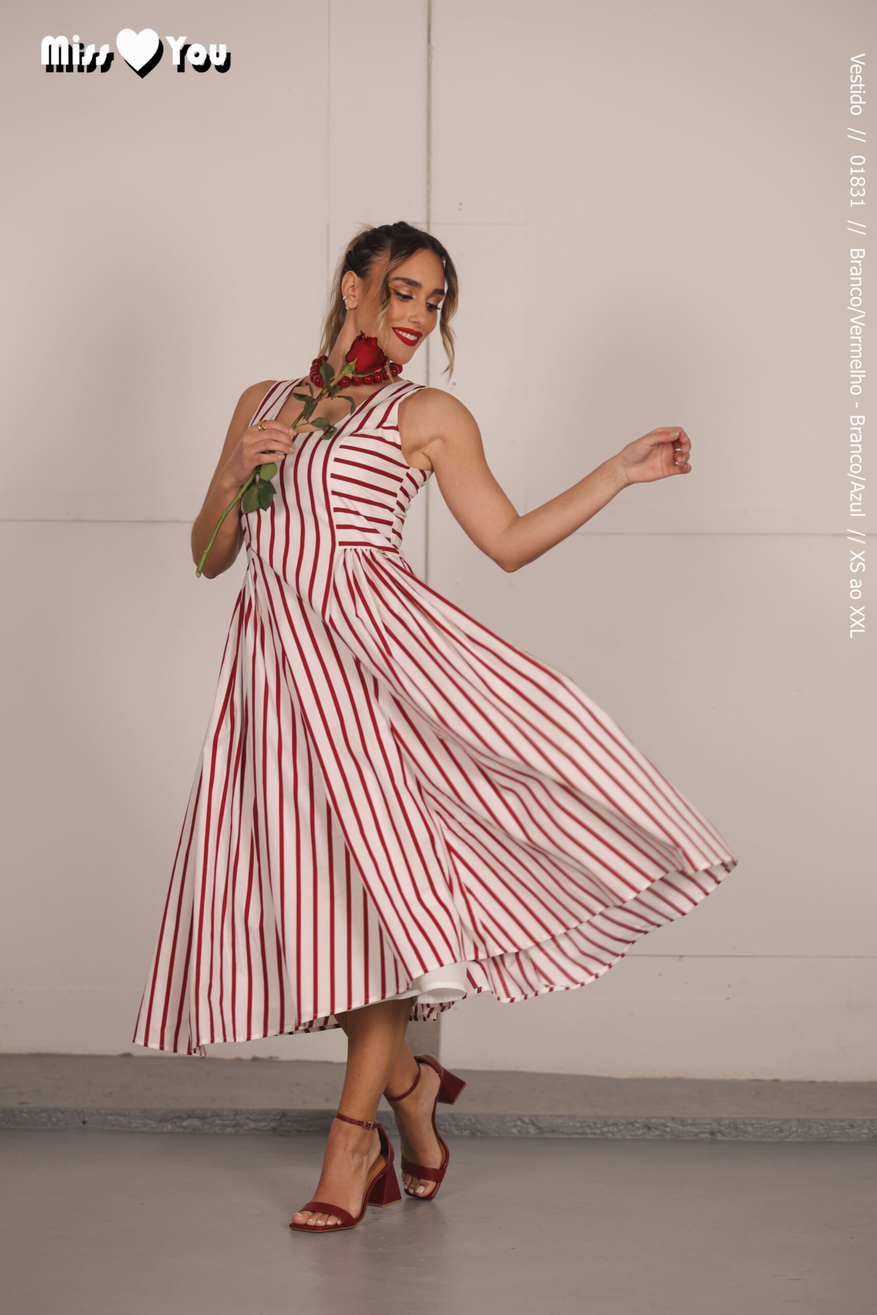 VESTIDO BRANCO COM RISCAS VERMELHAS MISS YOU