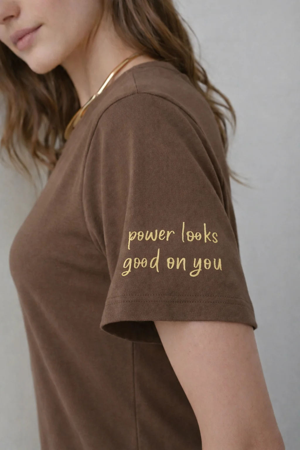 O destaque vai também para o detalhe na manga com a inscrição “power looks good on you”, que reforça o caráter contemporâneo e confiante do modelo.