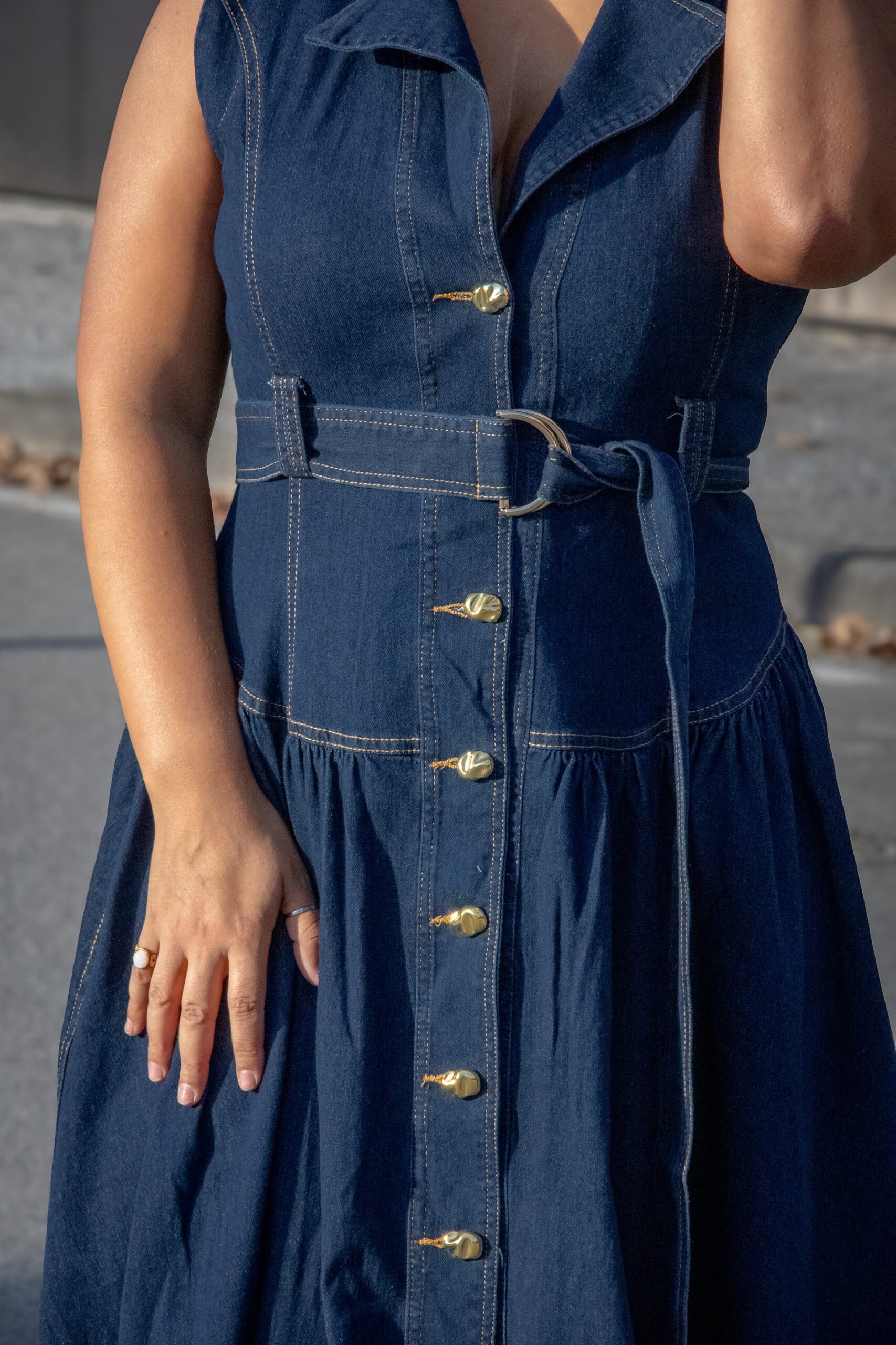 VESTIDO CAMISEIRO SEM MANGAS EM DENIM PONTO CHIC