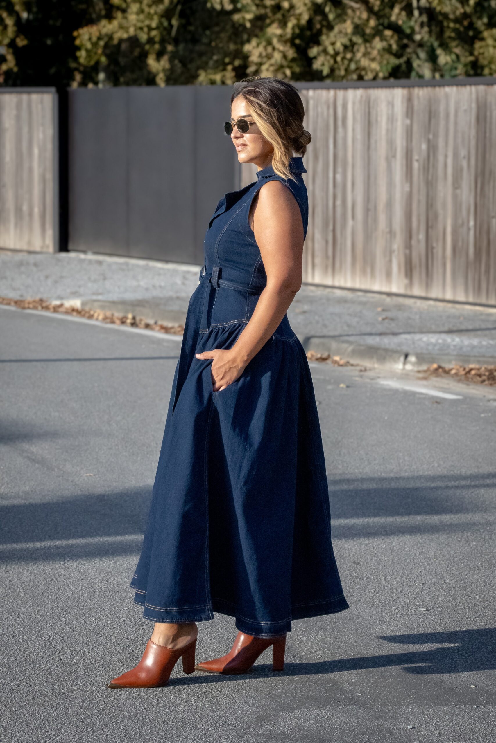 Perfeito para dias descontraídos ou coordenados urbanos mais polidos, este vestido em ganga Ponto Chic adapta-se a várias ocasiões e é um essencial versátil para todas as estações.
