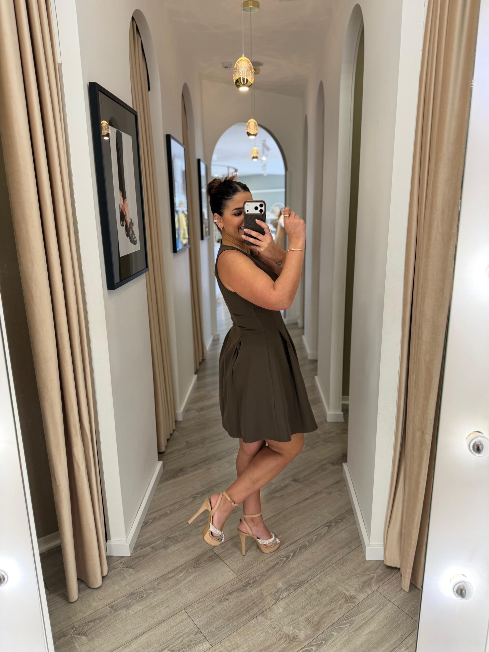 VESTIDO CASTANHO COM PREGAS E