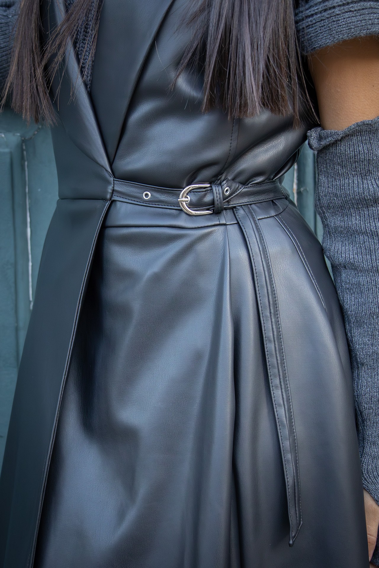 VESTIDO COLETE PRETO EM EFEITO PELE IMPERIAL