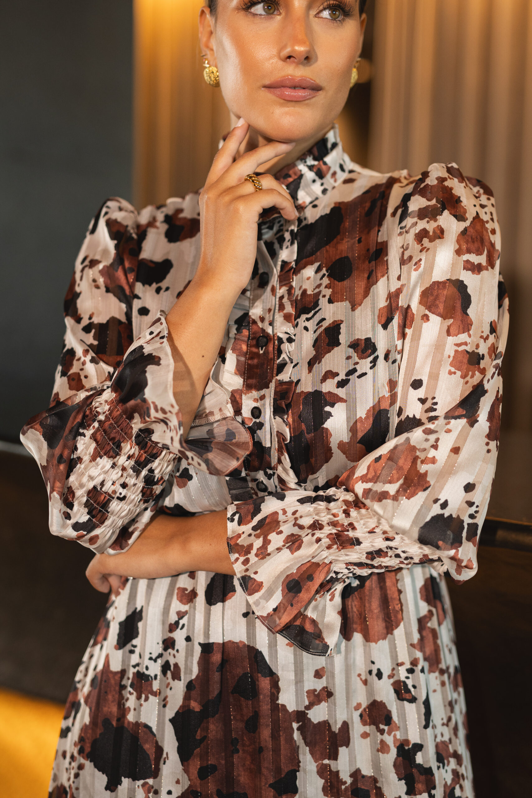 VESTIDO COM PADRÃO ANIMAL PRINT EM LUREX MISS YOU